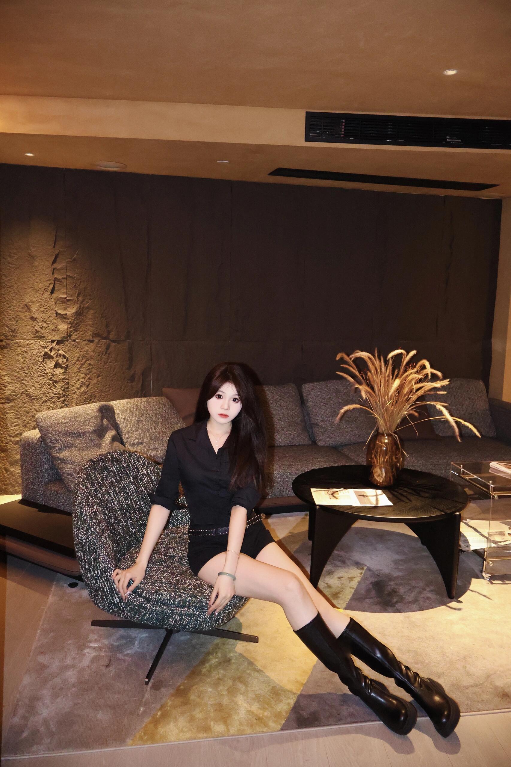 初冬时节,小黑靴百搭时髦又高级。少女身着过膝长裙,搭配黑色高筒靴,靴筒硬朗,赋予她英气与洒脱。这一身黑衣黑靴,既隔绝了微寒,又让她在都市中尽显现代感。她优雅地坐卧,仿佛自带一种从容笃定的气场,就像巴黎街头那些将时尚与优雅诠释到极致的女性一样,美得毫不张扬却又让人无法忽视。