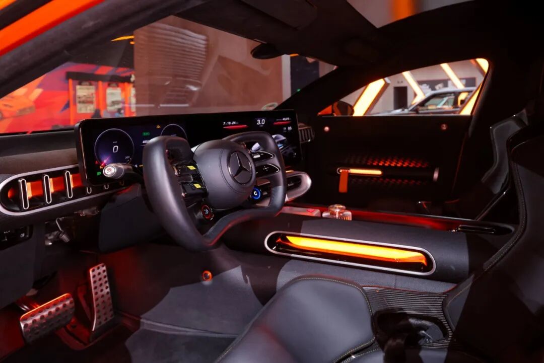 轴向磁通电机是这款概念车的技术核心之一,相比传统径向磁通电机,它以三分之一的重量和体积实现同等功率输出,不仅为整车减重,更优化了空间布局。这款电机由梅赛德斯-奔驰自有工厂生产,100道工序中包含35项全球首创技术,融合激光制造与AI技术,已斩获30余项专利,确保高负载工况下的稳定输出。