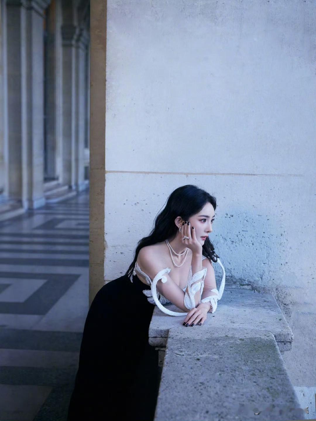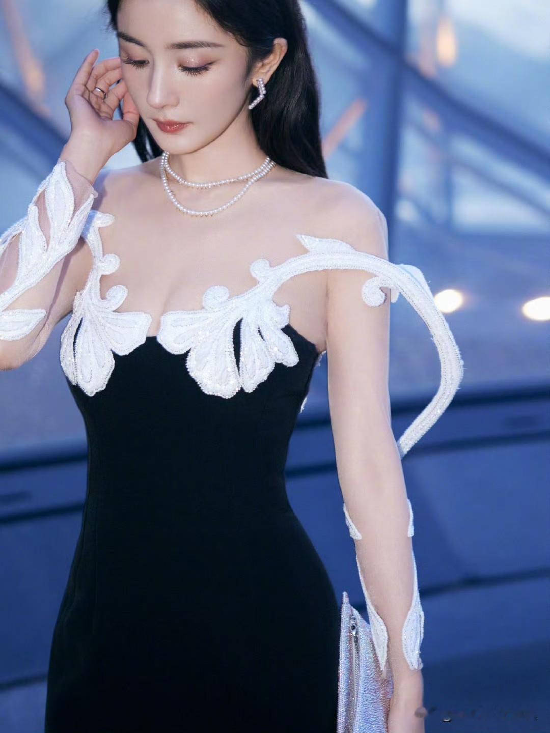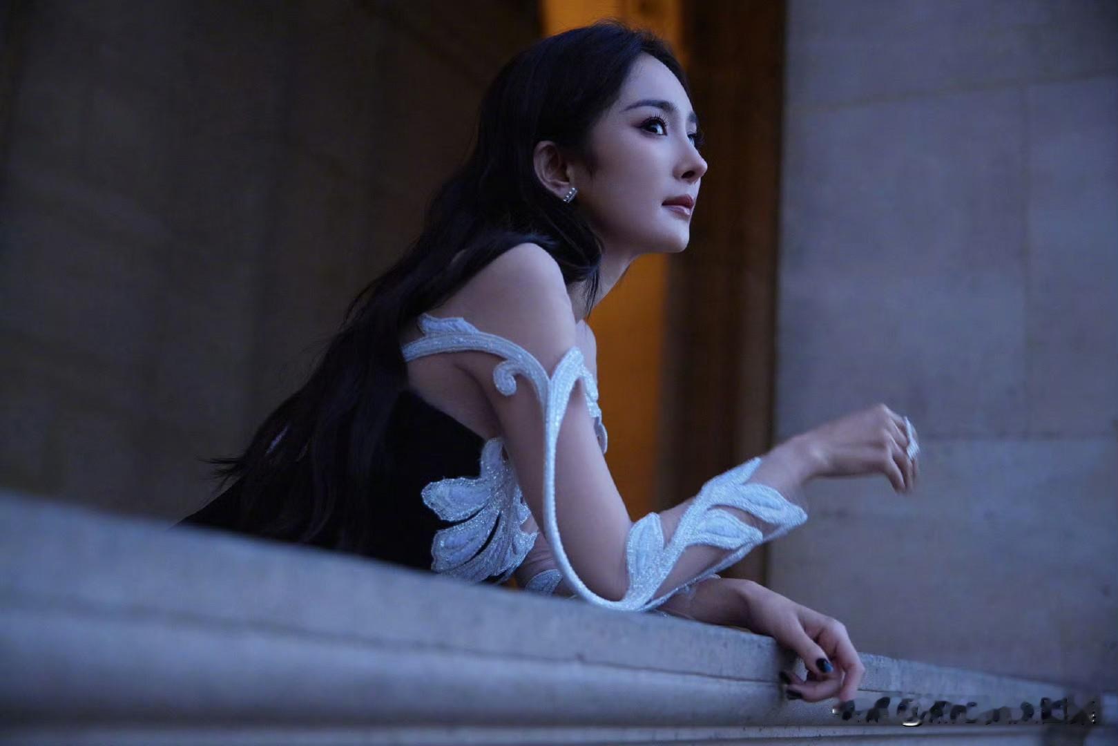 杨幂穿黑裙简直美出天际!她那身黑色针织镂空开衫配黑色开衩半身裙,披肩卷...