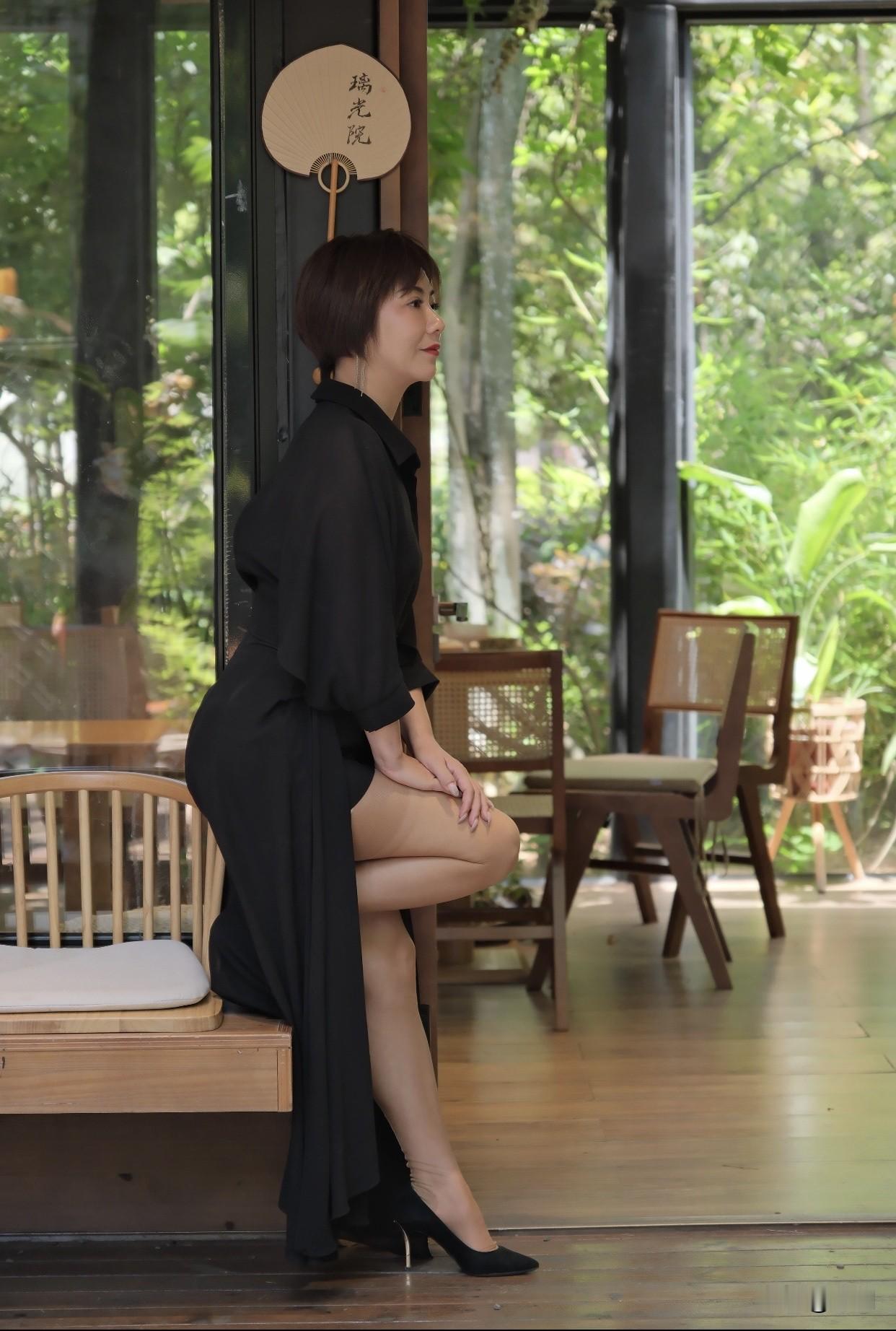 美女的美丽瞬间分享优雅黑裙,静坐窗边,岁月静好
