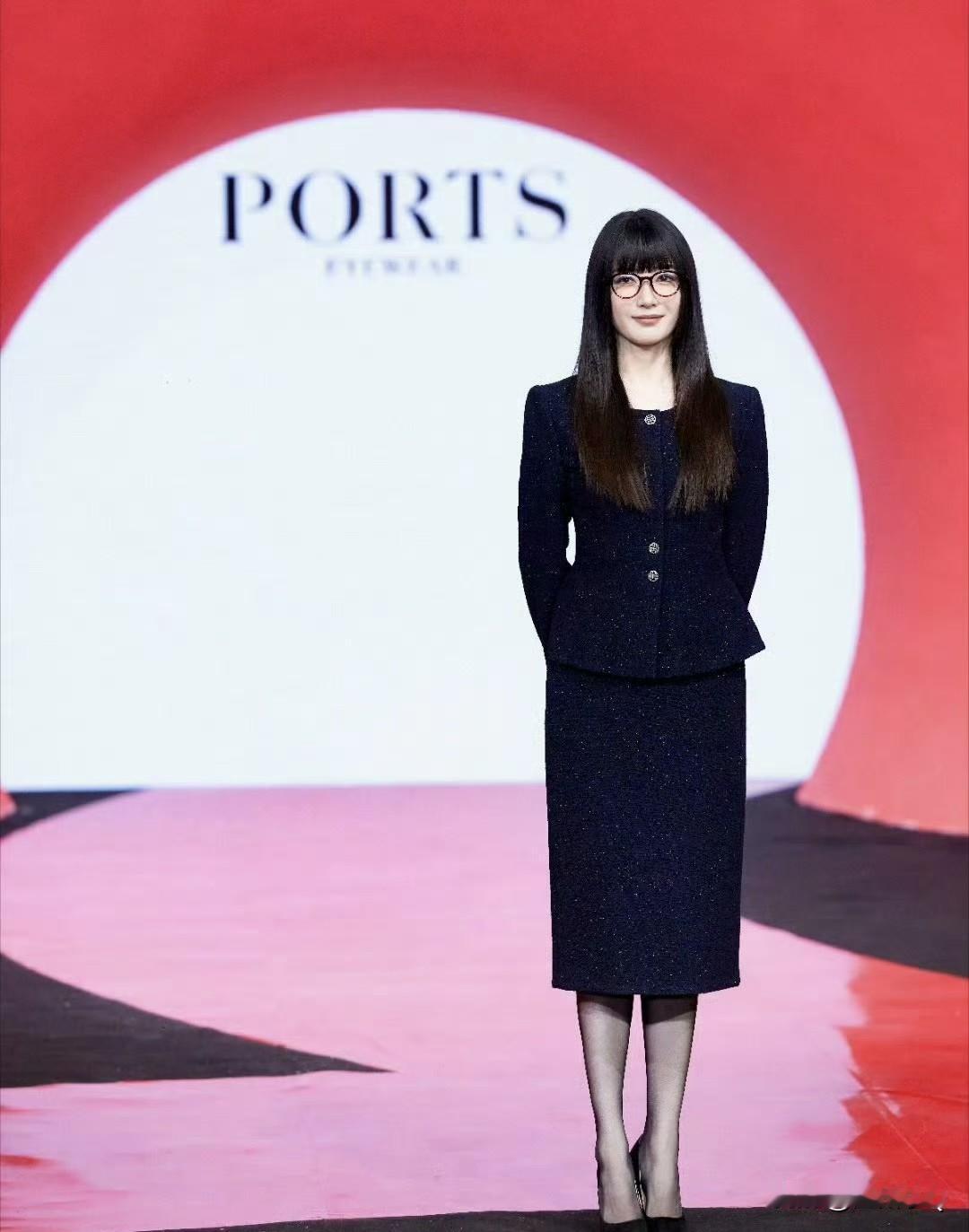 江疏影最新活动造型,黑长直齐刘海加眼镜,像日本女星,气质都变了,完全认不出她来了