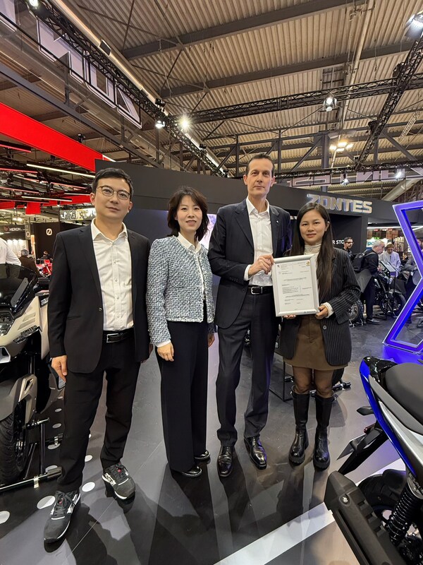 米兰2025年11月21日/美通社/--11月4日-9日,国际独立第三方检测、检验和认证机构德国莱茵TÜV(简称"TÜV莱茵")亮相意大利米兰国际摩托车及配件展览会(EsposizioneInternazionaleCicloMotocicloeAccessori,简称"EICMA")。展会期间,TÜV莱茵为多家摩托车、电动滑板车及头盔制造商颁发了欧盟型式认证证书,为产品出口提供强有力的支撑。