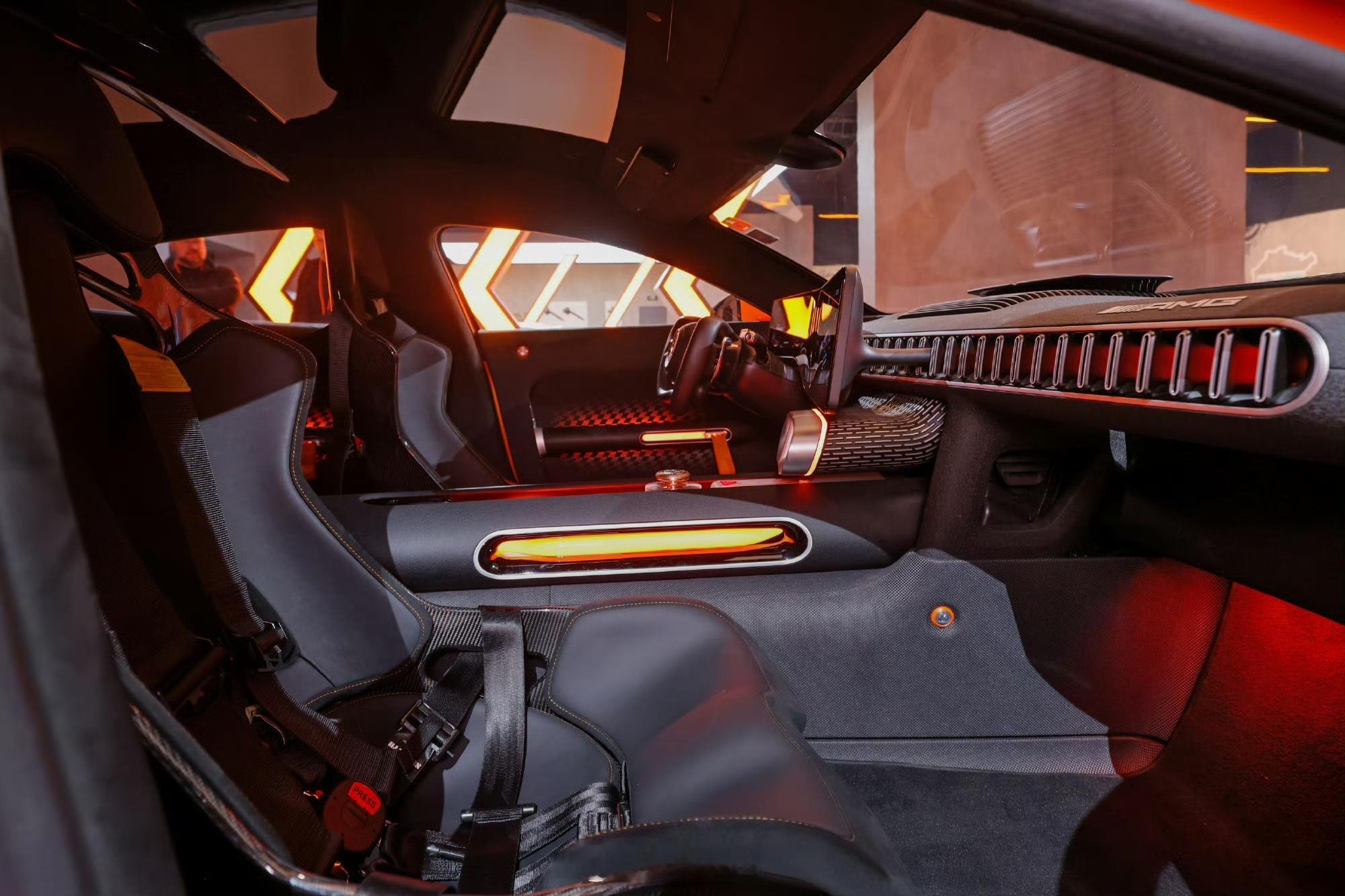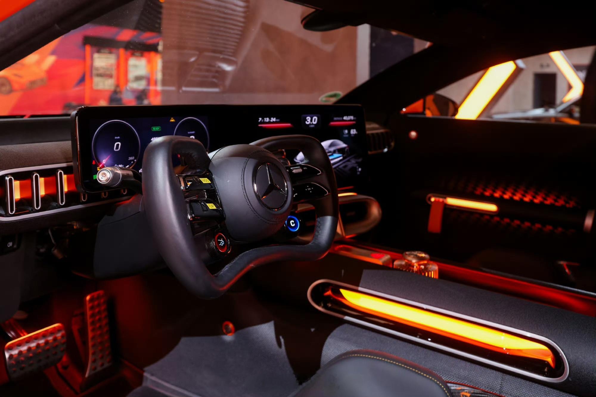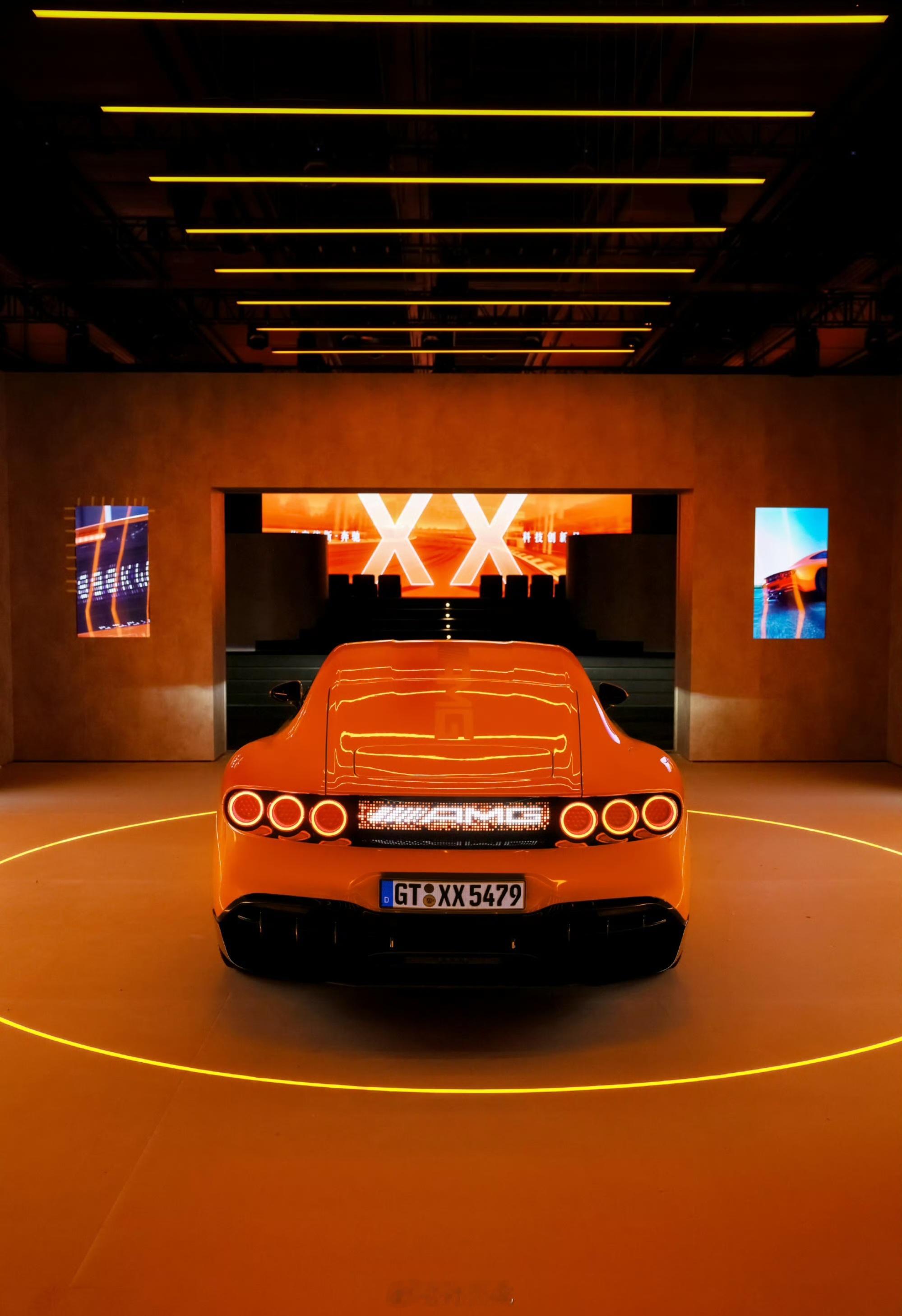 奔驰展台AMG GT XX概念车中国首秀。AMG GT XX概念车是首款搭载源自F1驱动科技、首款应用轴向磁通电机与电芯直接冷却技术的纯电车型。