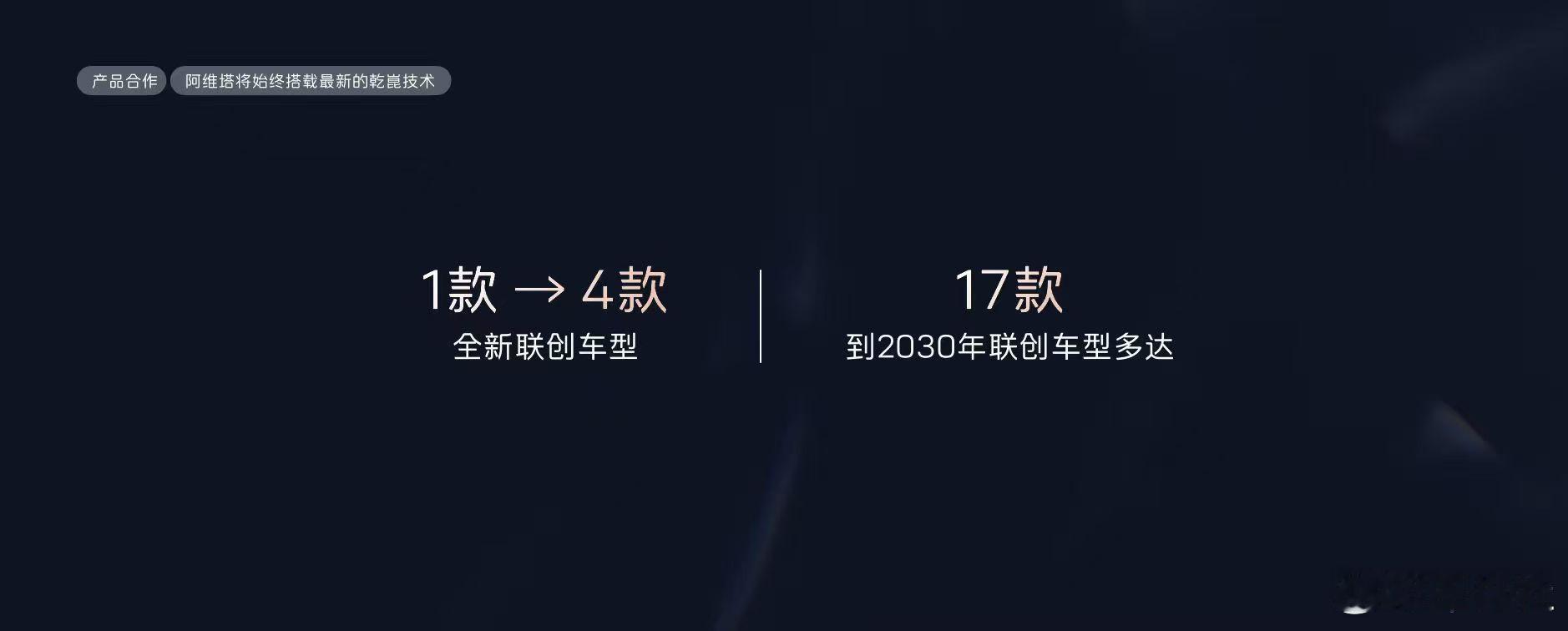 未来,华为乾崑智驾ADS高速L3解决方案、MoLA加持下的鸿蒙座舱L3等最新技术都将在阿维塔车型上量产!2026年,阿维塔与华为的全面联创车型从一款增加到四款,到2030年,双方将联合共创17款车型。