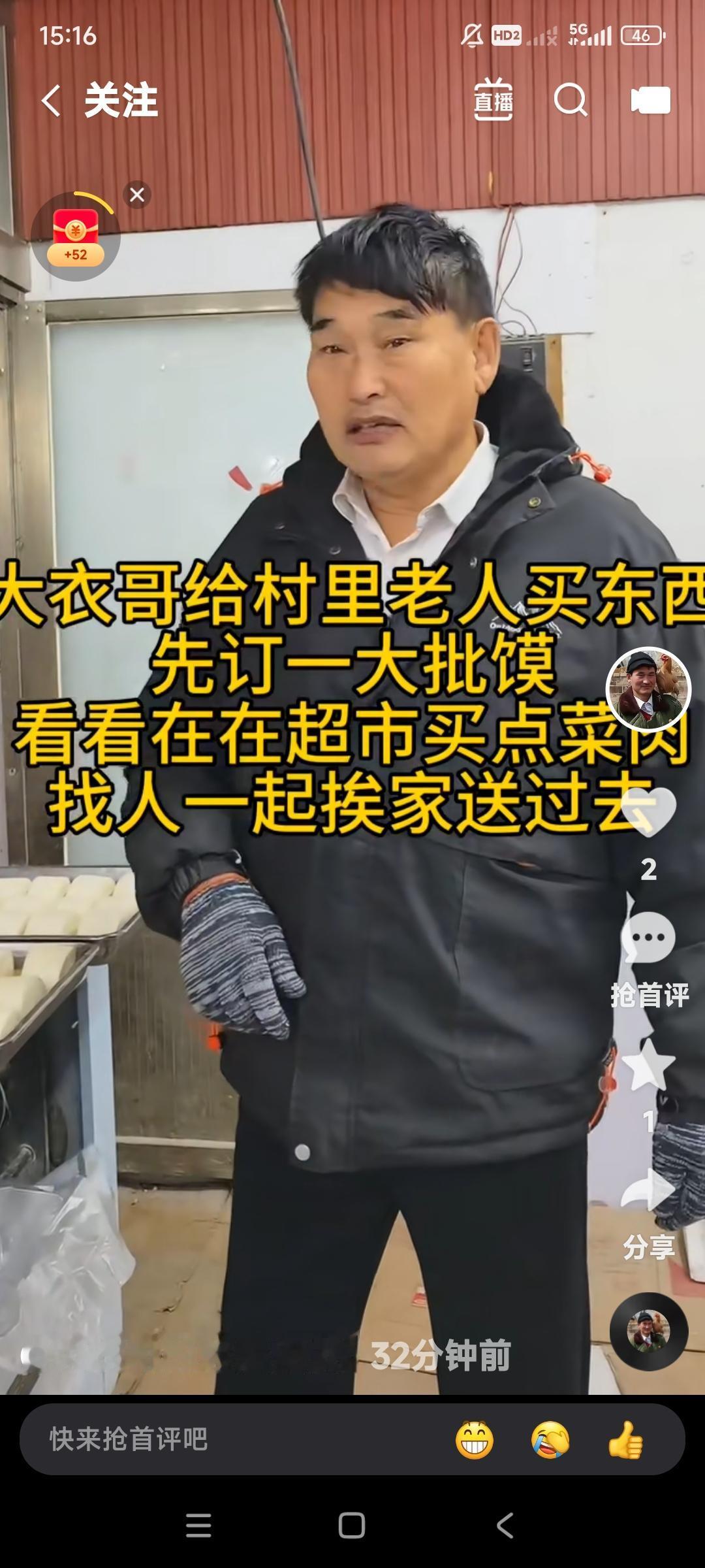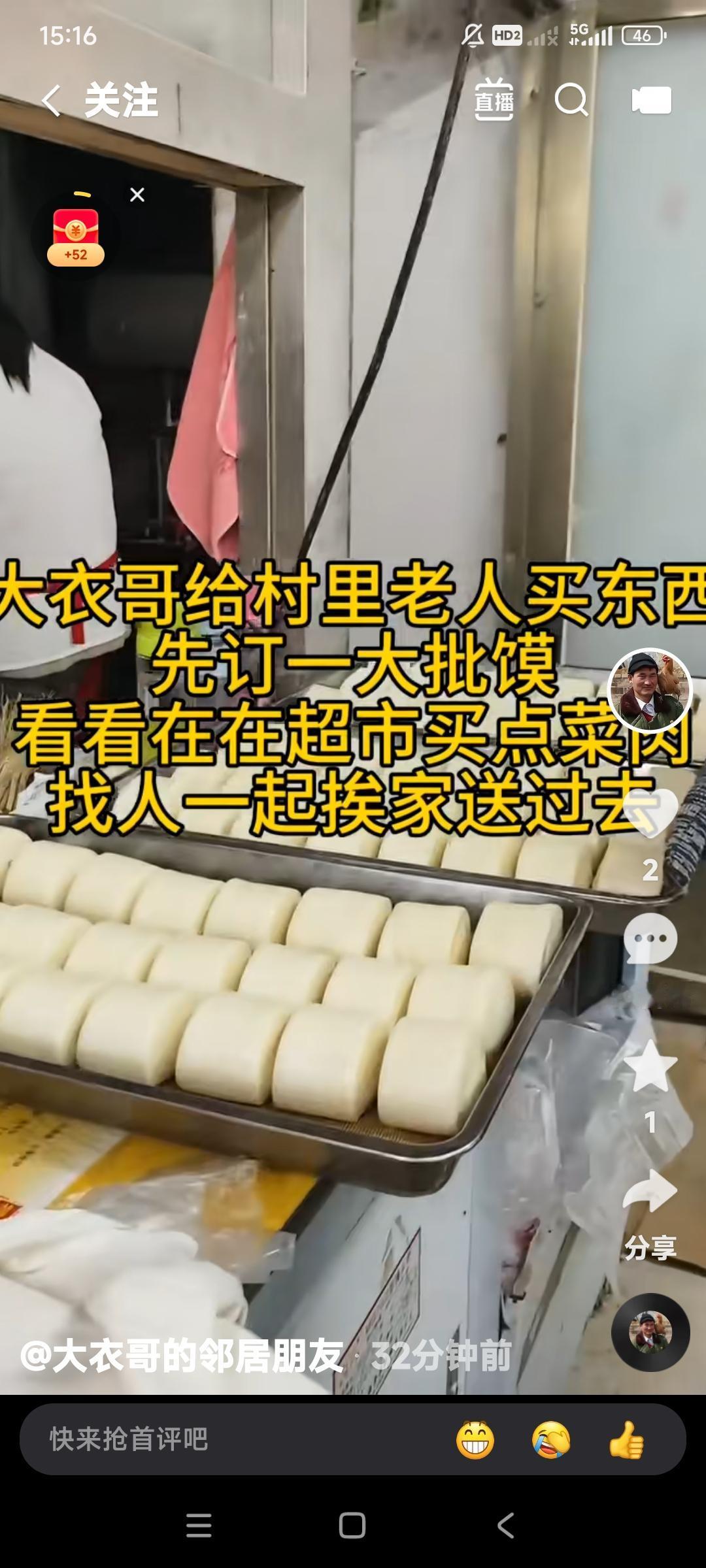 大衣哥,朱之文又做了一件善事。 大衣哥给整个村子里的老人买点。吃喝用品。 先订了一大批馒头。 然后到超市里又买肉又买菜。 挨家挨户送到有老人的家庭里。 礼轻情意重,是这么点儿意思。 你们说这算不算做善事?