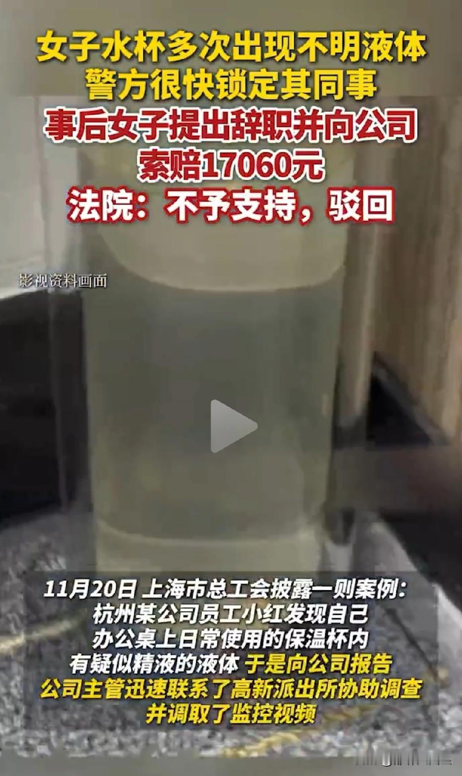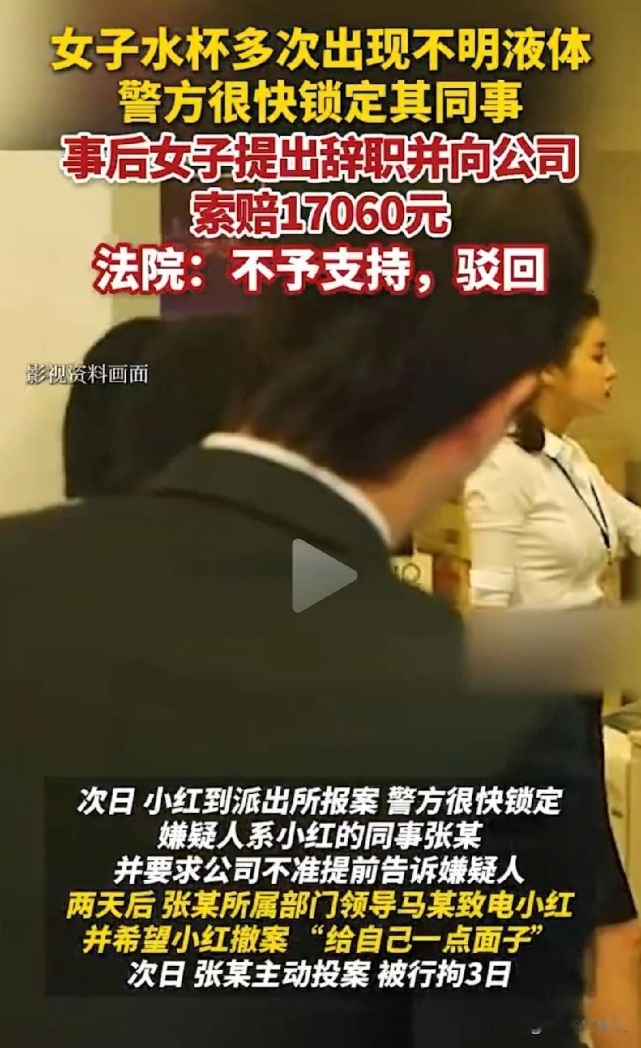 太龌龊了! 男子向女同事保温杯射精液,被拘留三日! 在杭州一家公司里,女子小红发觉自己的保温杯内有疑似精液的不明液体。 警方通过监控,锁定作案者是小红的同事张某。 让小红难以接受的是,张某这并非第一次,张某承认曾三次作案,只是前两次小红并未察觉。 后来,警方以寻衅滋事对张某处以行政拘留三日。 小红因不满公司处理方式而辞职,并要求经济补偿,然而仲裁和法院均未支持其诉求。 我觉得,男子张某的行径实在龌龊,竟用这种方式侮辱女同事,实在少见。 女子遭受侮辱后,精神必定受到了严重创伤,可张某仅被拘留三日,女子要求公司赔偿还遭拒绝! 对此,大家作何看法?