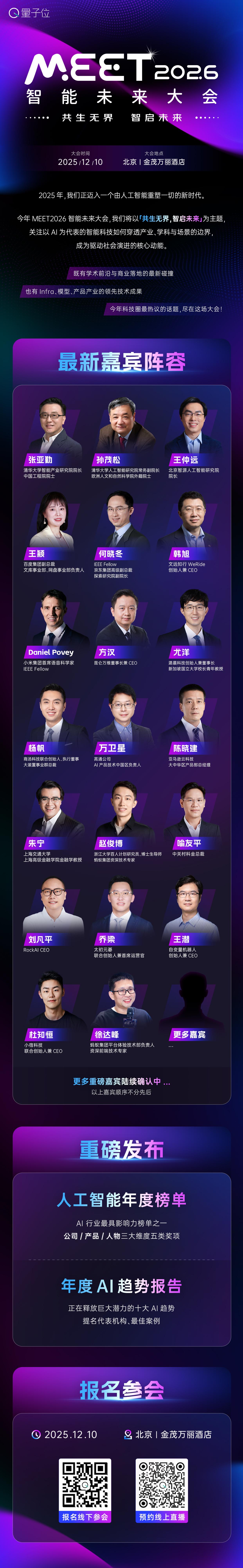🦾 北京智源人工智能研究院院长,王仲远已确认出席 #MEET2026智能未来大会#! 📢 聊AI,当然来12月10日 #MEET智能未来大会# !抢先报名线下参会 👉 王仲远博士,荣获2018年《麻省理工科技评论》“35岁以下科技创新35人”。曾在快手、美团、Facebook、微软亚洲研究院任职,负责人工智能核心技术研发。现任北京智源人工智能研究院院长。 王仲远博士在国际顶级学术会议及期刊发表论文100余篇,获得国际顶级学术会议ICDE 2015最佳论文奖。出版学术专著3部,获得美国专利5项,中国专利50余项。在人工智能研究领域及搜索推荐等实际产品系统中均有丰富经验与产出。主要研究兴趣包括:大模型、多模态、搜索推荐、具身智能、VR/AR等。