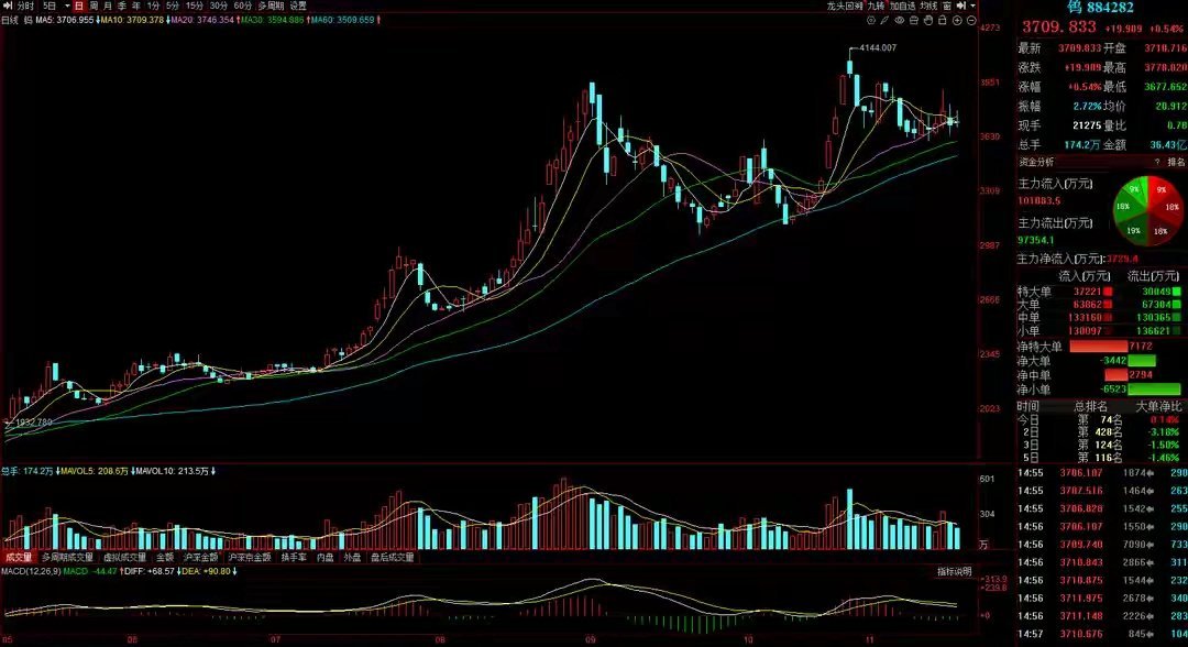 11月21日A股猛料:美联储大消息!隔夜外盘巨震!中概股加速探底聚焦A股市场每日重磅消息!在阅读正文前,你必须知道一点:没有几个主力资金会笨到在利好一出炉就将股价直线拉升到涨停,所以请股民朋友们耐心一点,让利好飞一会,也许你会发现不一样的投资机会!【国内外财经要闻/A股大盘展望】猛料一:广期所调整碳酸锂期货相关合约交易手续费标准及交易限额!事件:昨天,广期所发布公告,从2025年11月24日开始交易起,碳酸锂期货LC2601合约的交易手续费标准调整为成交金额的万分之三点二。同时,广期所还规定,非期货公司会员或者客户在碳酸锂期货LC2601合约上,一天之内开仓的数量不能超过500手。点评:就在11月18日,广期所刚刚把碳酸锂期货的交易手续费提高到成交金额的万分之一点二。才过了短短两天,广期所就再次上调了碳酸锂的交易手续费,还加了个交易限额。很明显,这是因为第一次提高手续费后,碳酸锂期货的价格并没有停止快速上涨,最近两天还在继续被“逼空”(就是多头力量很强,空头被迫平仓导致价格上涨)。可以预见的是,如果这次广期所出手还压不住价格,后面可能还会有更严厉的措施。不出意外的话,碳酸锂期货价格这几天可能就会快速掉下来。林哥在最近几天的文章里也跟大家提过,现在碳酸锂期货和A股市场关系很密切。因为锂电池板块是当前A股市场的核心热点,一旦锂电池板块因为碳酸锂价格波动而走弱,肯定会进一步拖累A股大盘往下走。猛料二:美国9月非农大超预期!美联储12月决策更趋复杂!事件:昨晚,推迟了好几个月的美国9月非农数据终于公布了。根据美国劳工部的数据,美国9月新增就业人数意外地达到了11.9万人,大大超过了市场预期的5万人。但是失业率却从8月的4.3%上升到了4.4%,创下了2021年以来的新高。点评:这份报告本来应该在10月3日发布的,它反映了美国政府停摆前的就业状况,是投资者和政策制定者都非常关心的一个重要经济指标。非农就业数据意外大增,一方面说明特朗普政府的一系列经济刺激措施起到了作用;另一方面,这也会让大家觉得美联储12月降息的可能性变小了。所以这组数据对资本市场的影响也比较复杂。昨晚,美股一开始因为英伟达的财报不错以及经济数据回暖这两个好消息而大幅高开,但盘中又因为大家对降息的预期下降而出现了剧烈的上下波动!值得注意的是,昨晚中概股的表现还是很疲软,再次创下了过去几个月以来的新低!大盘预判: 昨天A股大盘震荡着往下走,连续3个交易日都收在30日均线的下方,这说明短期内大盘向下变盘的风险在增加。而且昨晚的交易数据显示,机构和游资在大盘调整的时候都没有出手抄底。再加上中概股继续创新低,以及锂电池板块可能因为广期所的干预而回调。所以林哥认为,短期内A股大盘可能会向下回撤到60日均线附近,如果表现更差一些,那可能会在60日均线下方形成一个阶段性的低点。【行业/板块/题材概念消息点评】猛料三:供需向好钨价继续上涨,未来一段时间将保持高位运行!事件:昨天,章源钨业公布了11月下半月的长单采购报价:55%黑钨精矿32.80万元/标吨;55%白钨精矿32.70万元/标吨;仲钨酸铵47.80万元/吨。这些产品的价格和11月上半月相比,都再次出现了上涨,涨幅大概在6%左右。点评:这个消息对金属钨板块是个利好。今年以来,随着光伏、汽车等行业的明显增长,对钨的需求也大幅增加了。与此同时,钨的供给方面又在收紧,这就进一步加剧了市场供需紧张的情况。在这种供需都在变化的影响下,今年主要的钨制品价格涨得比较厉害,和年初的价格相比,全线都上涨了超过120%,最高的涨幅甚至超过了140%。整个产业链的产品价格都创下了历史新高。在A股市场方面,金属钨板块是典型的跟经济周期走的板块(顺周期),只要钨价能保持强势,相关的上市公司业绩和股价在一段时间内的表现应该都不会太差。