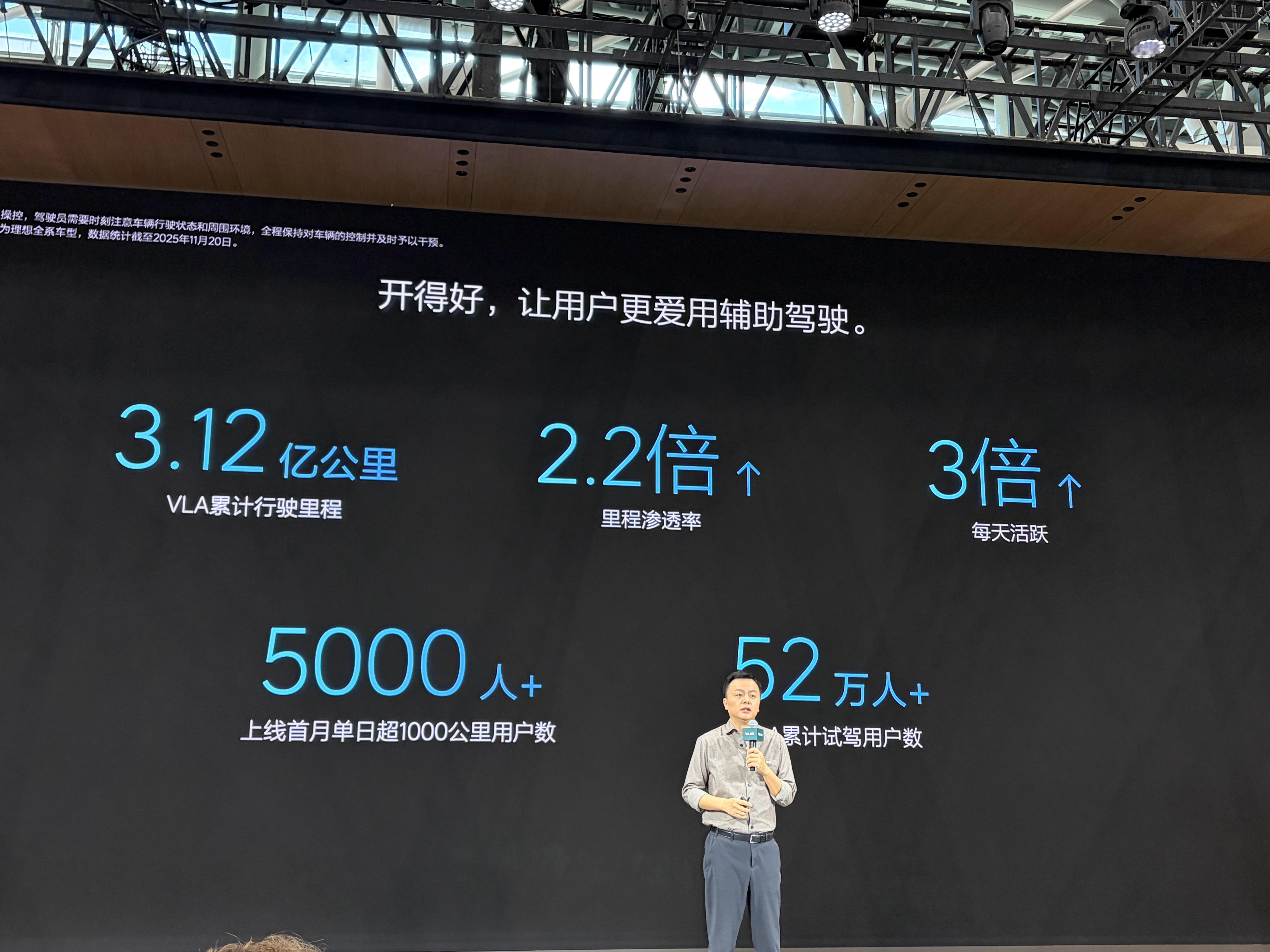 理想VLA推送以后,日活提升了3倍,单日VLA累计的行驶里程3.12亿。后者的数据有可能理解不了。但是前者的数据就是普通用户每天用 VLA 的频率提高了,信任度提高了。甚至还有单日开1,000多公里的,好多好多人