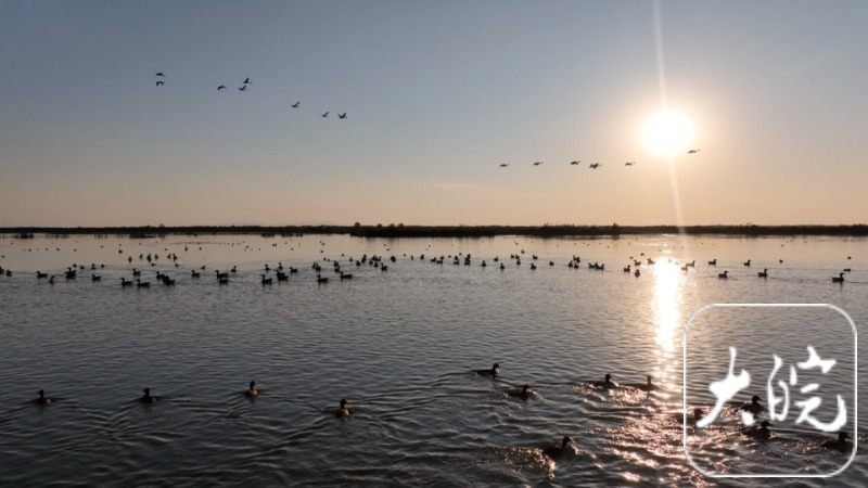 大皖新闻讯11月20日傍晚,在郎溪县飞鲤镇境内的南漪湖水域湿地,大批候鸟正在栖息。