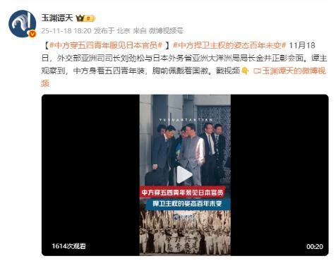 刘劲松的第一批“受害者”出现了!不是因为他说了什么,而是因为他这身五四青年装太有力量感,从而造成全网都在翻旧照找同款。 最近刘劲松司长火了,不是因为谈判时说得多犀利,是他身上那件五四青年装,硬是让全网都掀起翻旧照找同款的热潮,连平时不爱凑热闹的长辈们都跟着掺和。 这事得从11月18日那场中日会谈说起,刘劲松作为外交部亚洲司司长和日方官员金井正彰见面,他穿的不是常规西装,是件立领、盘扣的五四风中山装,胸前还别着国徽,看着就有股子精神头,正是当年五四青年常穿的样式。 会谈时刘劲松要么背手要么双手插兜,神情坦然,轮到日方提问,金井正彰却一直低头记笔记,偶尔点头,会后面对记者追问,啥也没说就快步离场,这反差画面一出来,网上就炸了。 日本网友先炸了锅,不少人跳出来说“插兜太傲慢”“这是外交侮辱”,甚至喊着要断交,结果有理性的日本网友甩了张旧照——当年美军官员插兜和日方会谈的照片,配文“不是讨厌插兜,是讨厌插兜的人没穿美军制服”,瞬间把那些人怼得没声了。 咱们这边的反应完全不一样,大家的目光全被那身衣服吸走了,有人翻出爷爷1950年在大学的毕业照,也是同款立领装,配文“原来我家老爷子早就赶过这波‘国潮’”;还有人找出1919年五四游行的老照片,青年们穿的正是这种样式,衣领挺直得像脊梁骨。 11月19日玉渊谭天发了评论,点出关键——中方穿五四青年服见日本官员,捍卫主权的姿态百年未变,这话算是说到了大家心坎里,评论区里全是“这衣服比千言万语都有力量”的留言。 可能有人不懂,一件衣服而已,咋就有这么大分量?你得知道五四那代青年,就是穿着这样的衣服上街呐喊,为国家主权拼过命,这衣服早不是普通服装了,是刻着“坚守主权”的符号。 刘劲松选这身衣服见面,不是随便穿的,会谈里他直接说“对此次磋商当然不满意”,这话配着这身衣服,就像把百年前青年的骨气穿到了谈判桌上,不用多解释,态度全摆在那了。 更有意思的是,不少年轻人开始跟风做同款,有服装店主说这几天咨询立领盘扣装的人翻了十倍,还有大学生定制时特意要求绣上“五四”字样,说穿的是底气。 日方后来还找补,说会谈视频“未经协调流出”要交涉,这就更有意思了,自己谈判没占着理,倒怪视频流出,难不成是怕大家看清会谈时的气场差距? 其实着装从来藏着态度,2019年咱们驻某国大使参加活动时穿了唐装,就是在文化交流里亮明身份;这次五四装更直接,是在主权问题上亮明立场,百年前青年没守住的,现在咱们得牢牢抓在手里。 有长辈留言说“看这身衣服就想起年轻时保家卫国的日子,现在的官员有这股劲,咱就放心”,这话特别实在,衣服是表象,骨子里的骨气才是根本。 你们家里有没有长辈留着类似的旧衣服?那可不是普通衣服,藏着辈辈传的骨气呢,不妨翻出来看看,说不定还能找到同款“精神图腾”。 日方那些玻璃心的抱怨没啥用,他们该明白,现在的中国早不是百年前了,不管穿什么衣服,捍卫主权的立场都不会变,这不是傲慢,是腰杆硬了的底气。 一件衣服能引发这么大反响,说到底是大家都懂,那股捍卫主权的骨气,从来就没断过,从五四青年到今天的我们,穿的是同款衣服,守的是同一份家国。 信息来源: 京报网——2025-11-18玉渊谭天:中方穿五四青年服见日本官员,捍卫主权的姿态百年未变