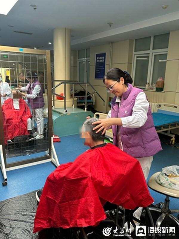 据了解,康复科的患者大多行动不便,外出理发成了他们住院期间的现实难题。了解到这一情况后,科室护士长郝晓苓便萌生了将理发服务请进医院的想法。她带着护理团队,提前在康复大厅一角支起了临时的“爱心发廊”,理发工具一应俱全,并且都经过了严格消毒。活动当天,不仅请来了经验丰富的理发师傅,郝晓苓还亲自上阵,为要求理净头发的患者细心修剪。她一边理,一边耐心询问患者感受,手上动作又轻又稳,理完后还小心搀扶患者起身,全程贴心守护。