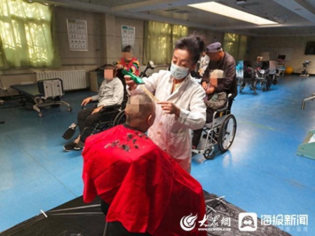 理发过程中,从打湿头发到精修细剪,理发师傅手法专业,态度认真,为一位位患者打理出清爽利落的发型。一旁的护理人员也没闲着,或是帮着递送工具,或是陪着患者拉家常,用亲切的问候与温暖的陪伴,悄然缓解着他们在康复之路上的焦虑。现场的患者家属纷纷拿出手机,记录下这温馨的一幕。“天冷,老人出门不方便,正为理发的事发愁呢。医院想得这么周到,服务还这么贴心,心里真是热乎乎的!”一位家属感动地说。活动现场,剪刀声、谈笑声、道谢声此起彼伏,原本气氛严肃的康复大厅里,此刻洋溢着家一般的温暖。