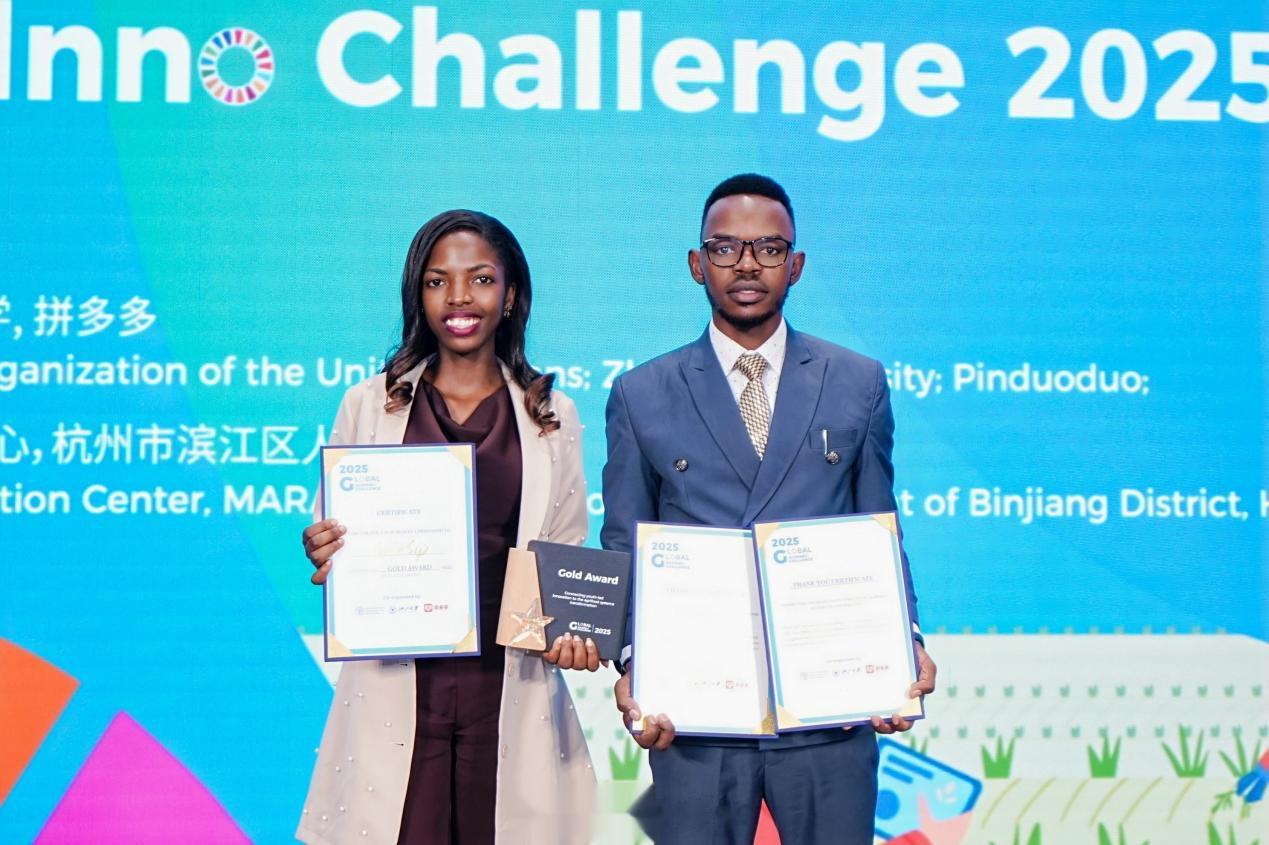 ▲获得2025全球农创客大赛金奖的SafeSip团队代表,赛后合影留念。(傅俊豪摄)