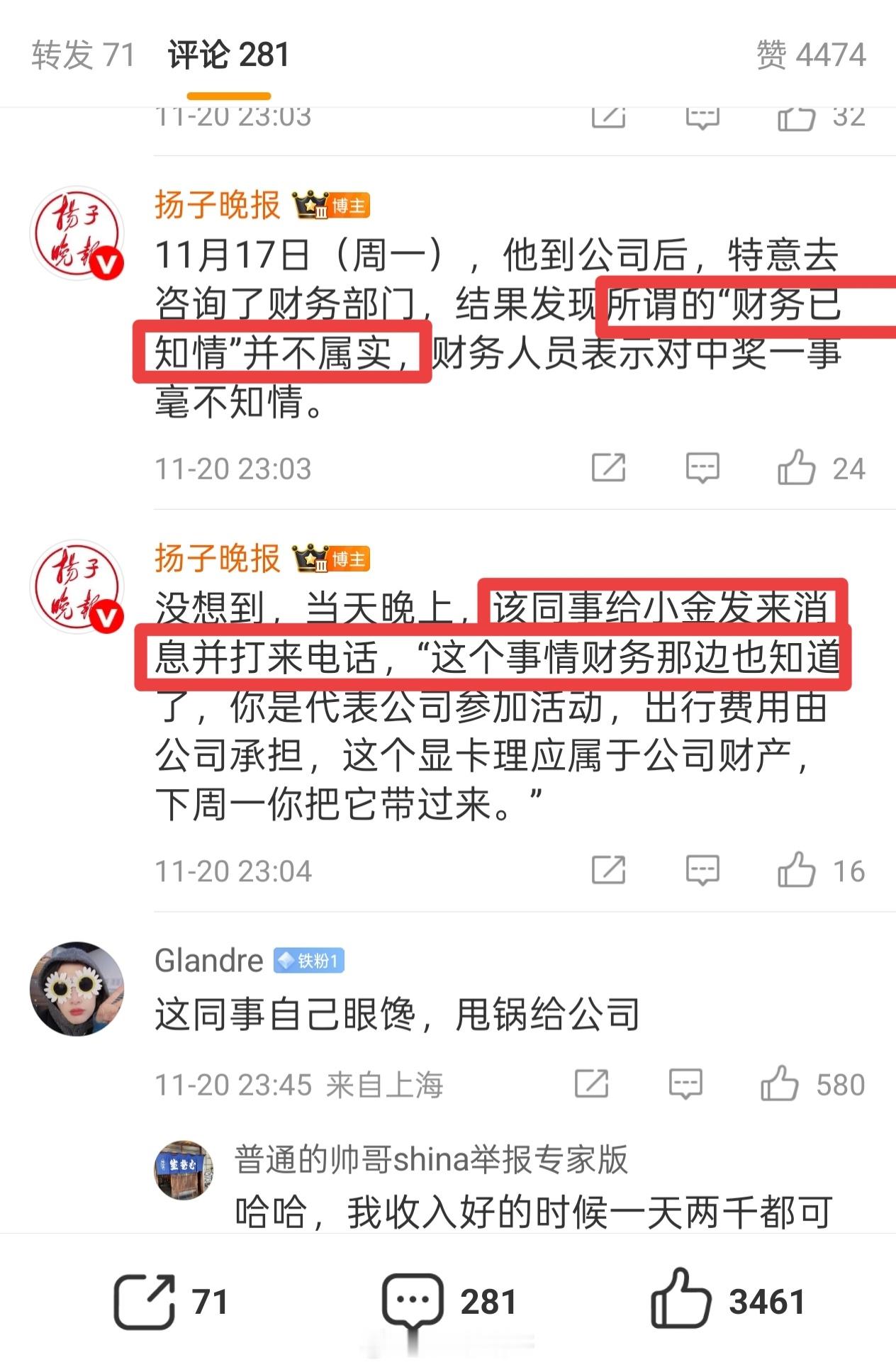 我以为中了一张5090呢,这个同事不就是嫉妒+心理扭曲了吗?这个同事还叫实习生把5060卖了换钱,其实财务不知道,其实故意吓人家实习生,想分一杯羹,财务那边知道了,你是代表公司抽中的......