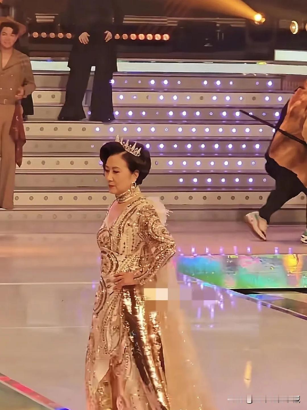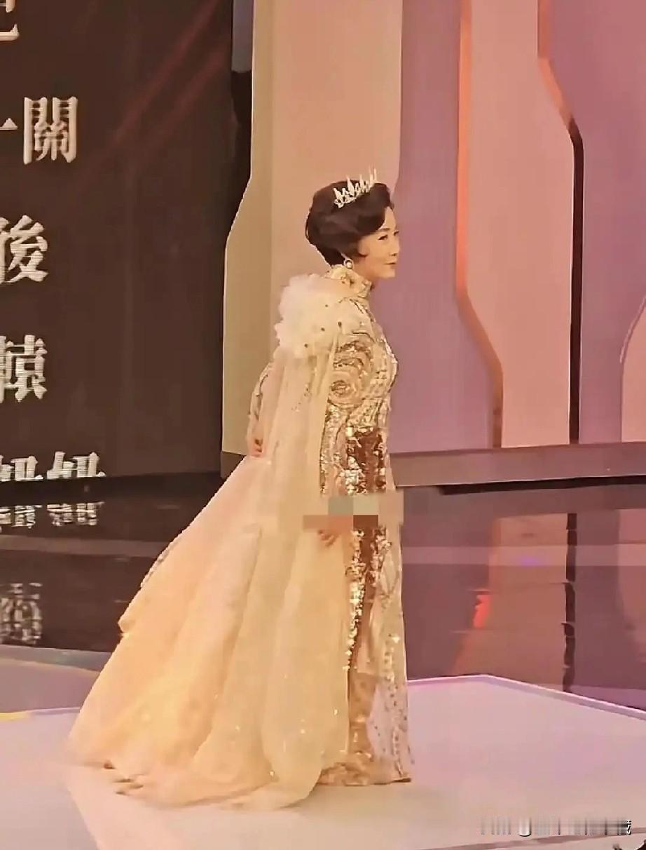 近日,阿姐汪明荃出席TVB周年庆典,穿着臃肿晚礼服,戴着王冠,汪明荃真的老了,舞