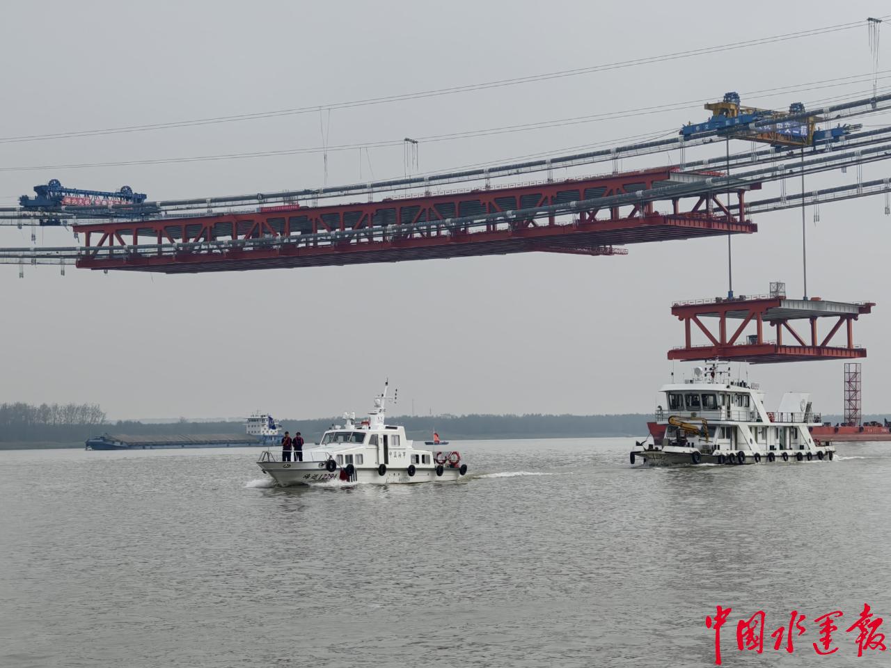 11月20日上午,随着燕矶长江大桥施工水域最后一片钢桁梁精准吊装到位,标志着大桥涉水施工维护关键节点取得重大突破。在这场难度强、风险高、任务重的水上维护作业中,黄冈海事处主动作为、周密部署,圆满打下这项水上交通安全维护任务攻坚战,为大桥建设提供坚实的水上安全保障。