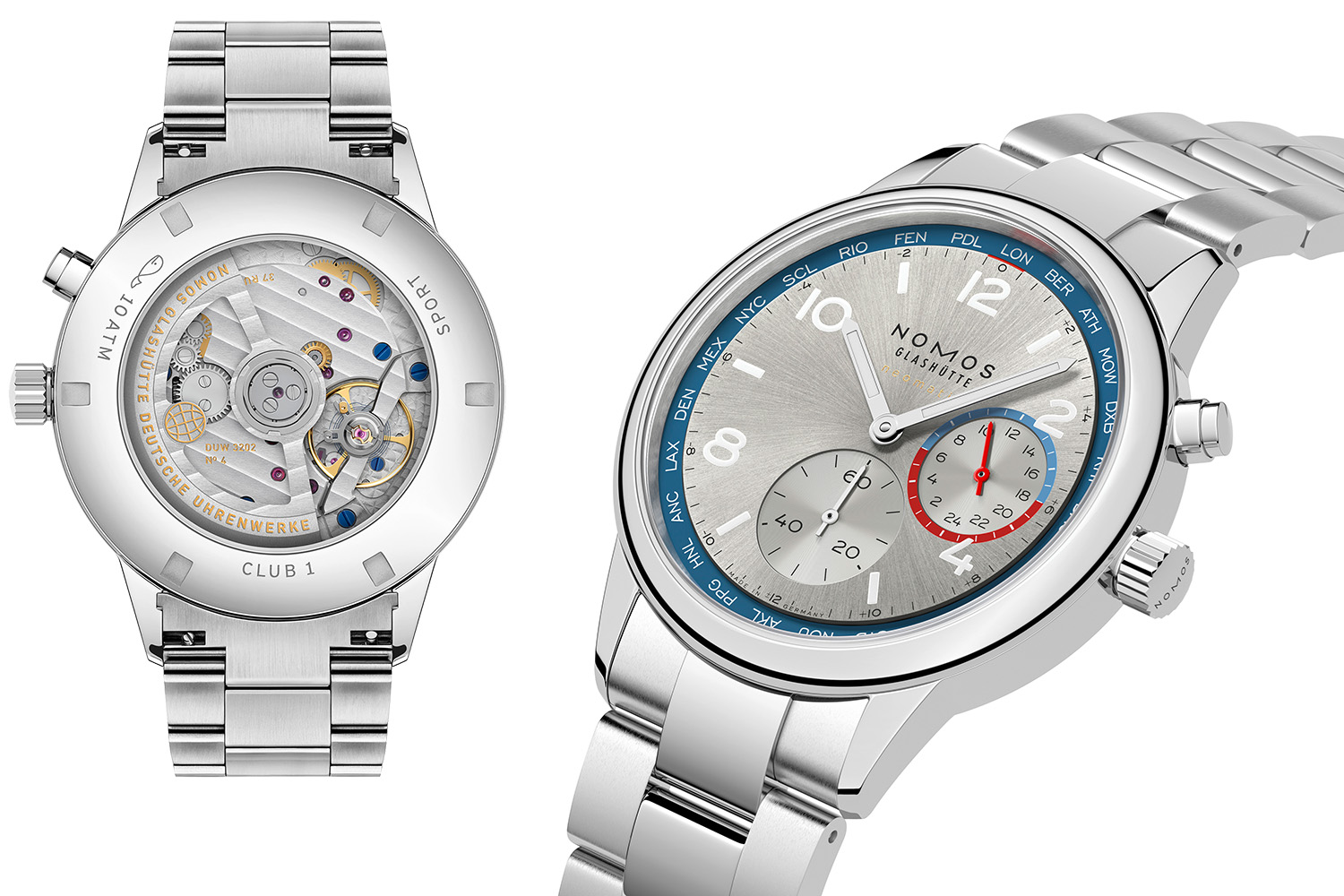 NOMOS为其运动俱乐部腕表加入了全新世界时功能,推出校园俱乐部系列创新自动机芯“环球行者”腕表(ClubSportneomatikWorldtimer)。新作秉持了品牌标志性的简明和优雅风格。品牌自主研发的全新DUW3202世界时间自动机芯是本次发布的核心,它将复杂功能完全整合到neomatik机芯中,动力储存达42小时。机芯厚度仅为4.8毫米,比普通护照更加纤薄。腕表表壳直径40毫米,整体厚度为9.9毫米,是迄今为止最薄的自动世界时间腕表。表壳防水性能约100米,适应海陆等多场合佩戴。