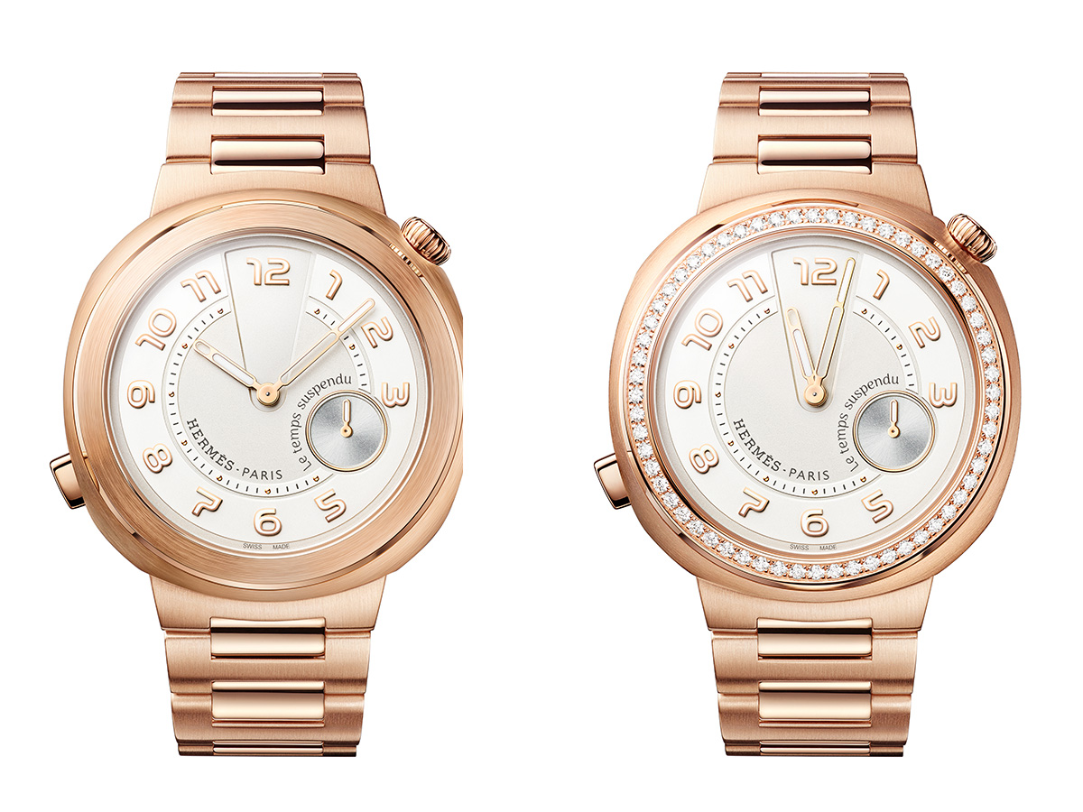 爱马仕为去年推出的HermèsCut系列腕表注入独家复杂功能,呈现全新HermèsCutLetempssuspendu时间暂停腕表。39毫米的玫瑰金表壳,呈现利落线条和大胆的几何造型,搭载由爱马仕H1912自制机芯及其驱动的“Letempssuspendu”时间暂停功能模块。这一令人惊喜的搭配是一种颇具趣味的致敬,个性鲜明的设计融合时间暂停功能,进发无限可能。拥有逆时针旋转功能的显示盘,平添一抹谐趣。新作提供红色或镀银乳白色等表盘选择,后者备有镶钻或不镶钻表圈。