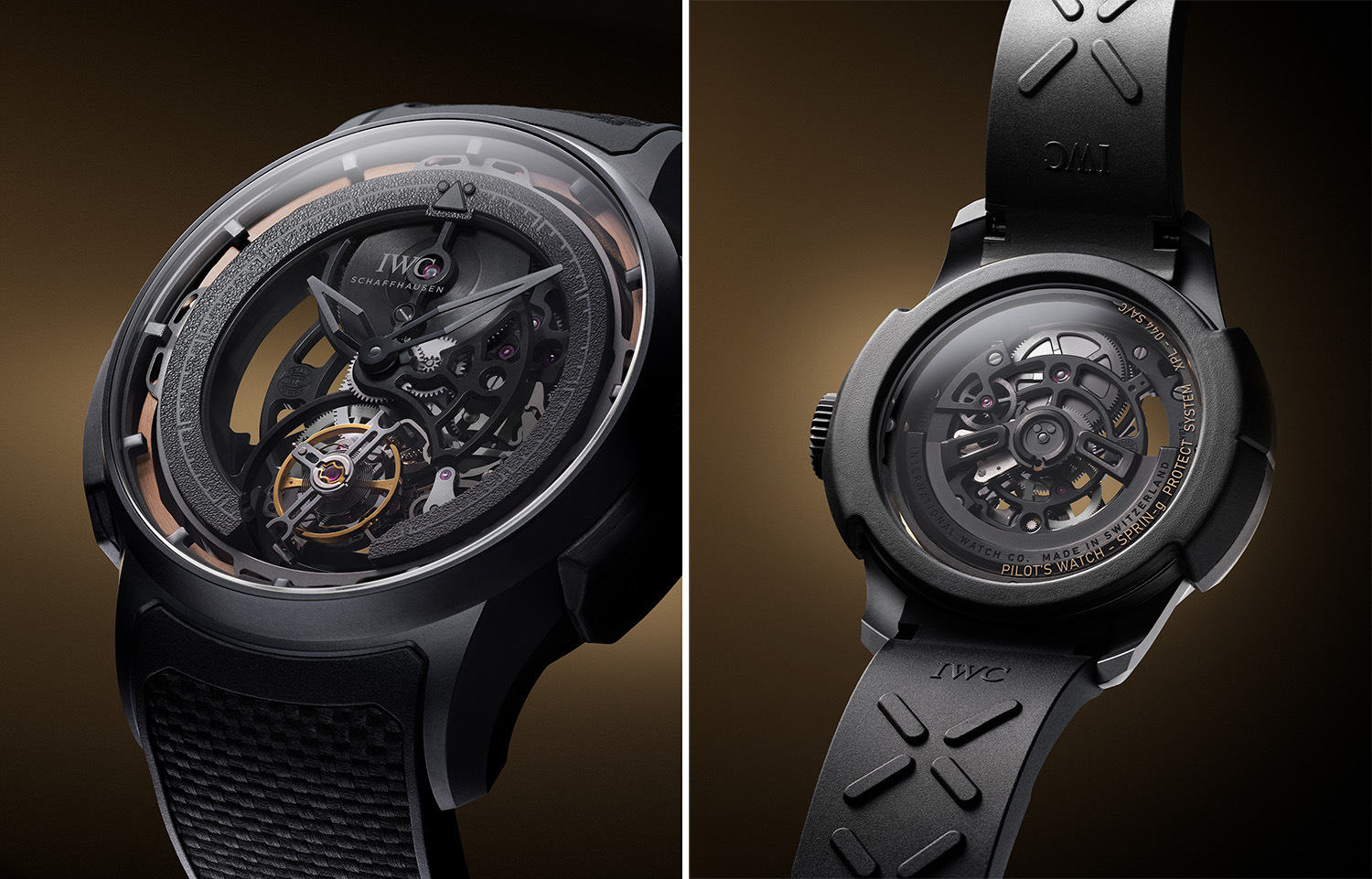 全新腕表的表壳与表冠采用Ceratanium瓷化钛金属材质,该材质为IWC万国表2017年创新研发所得,既有钛金属的轻盈坚固,亦可比肩陶瓷的坚硬耐磨。表壳两侧配备独特橡胶护垫,搭配备有Ceratanium瓷化钛金属针扣的黑色纹理橡胶表带。