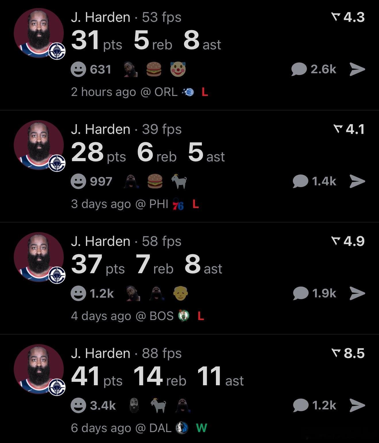 真是不查不知道,一查吓一跳啊😮哈登于23年11月被交易到快船,截至目前3个赛