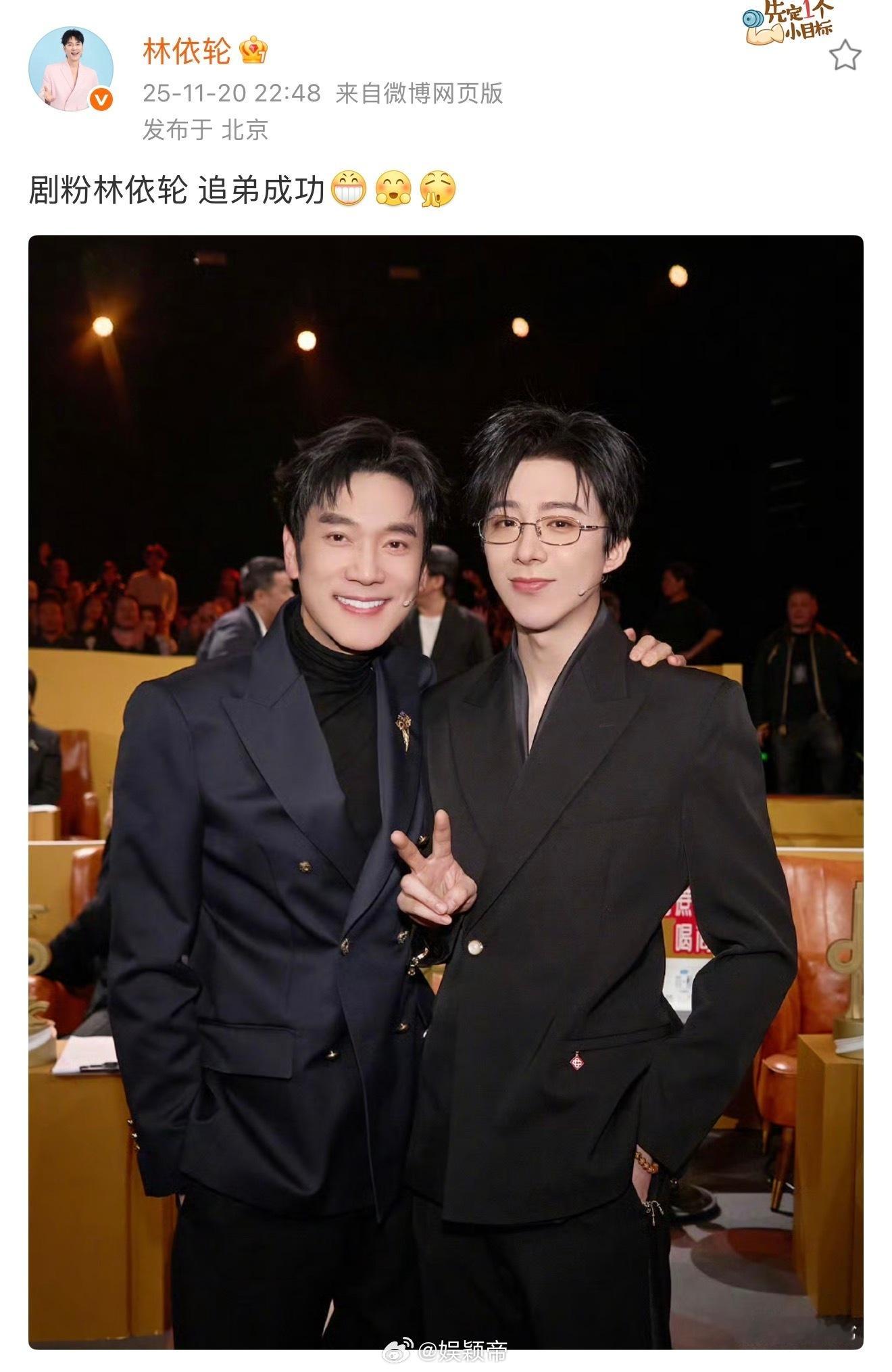 破防了!林依轮这冻龄术是向时间管理局申请了专利吧?站在刘宇宁身边依然星光不减,两代帅哥的同框简直像打开了时光滤镜——建议科学家速来研究他们的抗衰老基因!