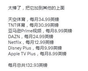 对于英国电视观众而言,2027 年起若想观看所有国内及欧洲赛事,每月需支付 76.96 英镑。具体来说,观众需订阅天空体育(英超、联赛杯、EFL、欧联杯、欧协联,34.99 英镑 / 月)、TNT 体育(英超、足总杯,30.99 英镑 / 月)、亚马逊 Prime(欧冠,8.99 英镑 / 月)以及派拉蒙 +(欧冠,4.99 英镑 / 月)💸TA:派拉蒙+(Paramount+)已获得2027年至2031年期间英国地区欧冠联赛大部分赛事的转播权,而天空体育则拿下了2027/28赛季起欧联杯和欧协联的转播权。派拉蒙+隶属于美国娱乐媒体集团派拉蒙-天舞传媒(Paramount Skydance),同时被指定为德国地区核心转播套餐的优先竞标方;亚马逊Prime视频(Amazon Prime Video)则保留了德国、意大利和英国地区欧冠联赛的优先选赛转播套餐。在英国,亚马逊转播的欧冠赛事仍将安排在周二晚间进行,但在德国和意大利将调整至周三晚间。 ⚠️天空体育自2015年最后一次转播欧冠联赛后,便未再涉足欧洲赛事转播领域,如今将成为欧足联旗下第二、第三级别俱乐部赛事在英国的独家转播平台。派拉蒙与天空体育的胜出,意味着TNT体育的地位旁落——该平台自2013年起便一直是英国和爱尔兰地区欧足联俱乐部赛事的主要转播方,最初以英国电信体育(BT Sport)名义运营,2023年更名后以TNT体育继续提供服务。TNT体育为当前2024至2027年三年转播周期支付了10亿英镑,此次虽试图保住转播权,但最终不敌派拉蒙的雄厚资金实力。在甲骨文(Oracle)联合创始人拉里·埃里森之子大卫·埃里森的领导下,派拉蒙一直积极寻求转型,致力于打造现代化内容与流媒体业务,以抗衡迪士尼(Disney)和网飞(Netflix)。高端体育赛事转播是其战略核心——自2019年起,该平台已持有欧冠联赛在美国的转播权。事实上,得益于凯特·阿布多、杰米·卡拉格、蒂埃里·亨利和迈卡·理查兹组成的解说团队在社交媒体上极具亲和力的互动风格,其欧冠转播内容在海外也广受好评。不过,TNT与派拉蒙的竞争背后暗藏变数:派拉蒙-天舞传媒正洽谈收购TNT体育的母公司华纳兄弟探索集团(WBD)。若交易达成,派拉蒙与华纳兄弟的好莱坞制片厂、美国哥伦比亚广播公司(CBS)、美国有线电视新闻网(CNN)、家庭影院频道(HBO)等数十家全球网络及流媒体平台(包括英国免费频道第五频道)将实现整合。但这笔交易尚未尘埃落定,仍需跨越众多监管障碍,更不用说康卡斯特(Comcast)和网飞等企业也对华纳兄弟探索集团的资产表现出兴趣。不过,凭借埃里森家族的巨额财富以及与美国总统唐纳德·特朗普的密切联系,派拉蒙目前处于领先地位。 尽管这一并购案在美国媒体和政治圈引发广泛热议,但对英国球迷而言,核心影响在于:2027年起,若想观看欧冠联赛,他们需订阅新的流媒体服务;而若要观看欧冠、欧联杯和欧协联全部三项赛事,则需分别订阅三个不同平台。💰此次转播权拍卖由UC3联合财团主导——该财团由欧足联与欧洲足球俱乐部协会(European Club Association,现更名为European Football Clubs)共同成立,并联合其新代理机构瑞莱文特体育合作伙伴运作。瑞莱文特于2024年取代了与欧足联合作多年的TEAM营销公司,成为新的转播权销售合作伙伴。这一变动终结了TEAM营销公司与欧足联的长期合作关系——双方的合作曾为TEAM、欧足联及所有参与欧足联俱乐部赛事的球队带来丰厚收益。但2021年欧洲超级联赛计划夭折后,各大豪门俱乐部决定在赛事运营与营销方面争取更大话语权。瑞莱文特体育由迈阿密海豚队老板斯蒂芬·罗斯控股,该公司向UC3联合财团承诺,将把赛事年度营收从目前的44亿欧元(约合39亿英镑)提升至2027年的50亿欧元(约合44亿英镑),长期目标是到2031年达到65亿欧元(约合57亿英镑)。为实现这一营收目标,在欧盟委员会的支持下,UC3联合财团与瑞莱文特决定将常规的三年转播周期延长一年,为竞标方提供更稳定的预期和更多赛事资源;同时,首次在欧洲五大市场(法国、德国、意大利、西班牙、英国)同步启动招标流程。此外,招标方还鼓励竞标方参与多个市场的竞标,并专门划出少量赛事的独家转播套餐,旨在吸引苹果(Apple)、网飞(Netflix)或YouTube等全球流媒体平台参与竞标。知情人士(因未获公开讨论授权而匿名)透露,确实有企业为全球转播套餐提交了报价,但金额不足以弥补派拉蒙、亚马逊等平台在地区性转播交易中可能降低的出价,因此该套餐未成功售出。即便如此,此次拍卖仍竞争激烈,五大市场均需通过第二轮竞标才最终确定结果。 Canal+成为法国市场的最大赢家,斩获了所有赛事的独家转播权。《竞技报》获取的一封 Canal+ 首席执行官马克西姆·萨阿达致员工的邮件中写道:“如今,我们再次证明,我们的体育转播服务是全球最顶尖的。我们所有人都应为此感到自豪。”TNT体育的氛围则截然不同——尽管该平台仍持有英超周六早场赛事、英格兰橄榄球超级联赛(Prem Rugby)和板球灰烬杯(The Ashes)的转播权,但如今已缺少顶级赛事内容。TNT体育发言人在一份声明中表示:“归根结底,我们始终坚持对自身业务和客户具有财务意义的合作方针。”派拉蒙、瑞莱文特体育及UC3联合财团均拒绝置评。