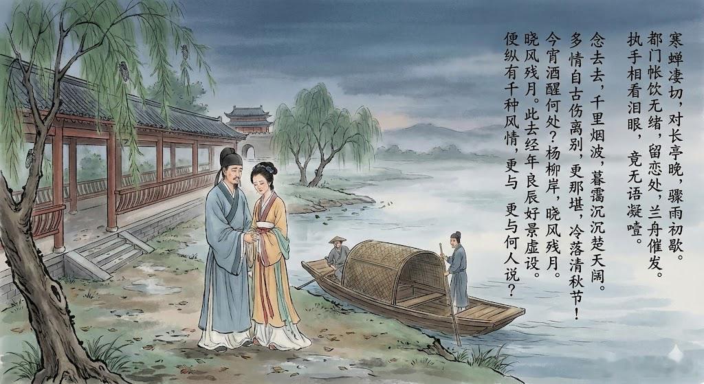 Nano Banana Pro生成古诗词,太有意境了!提示词:"生成这首古诗描述的画面,要贴合意境,并在图片适当位置显示原文"。画面是《雨霖铃》这首词,AI可谓是真体会到了词的意境:烟雾缭绕的江面、乌篷船、垂柳、亭台、画面的色调也是青灰色的,压抑感满满。诗词原文用竖排繁体字嵌入画面右侧,字体选的是传统书法风格,排版也很自然,不会显得突兀。以后语文老师可以用它快速生成课件配图,让学生更直观地理解诗词意境了。当然,AI生成的画面虽然意境到位,但细节不一定完全符合历史考据。比如服饰、建筑风格可能有偏差,所以如果是学术用途,还是得人工校对一下。