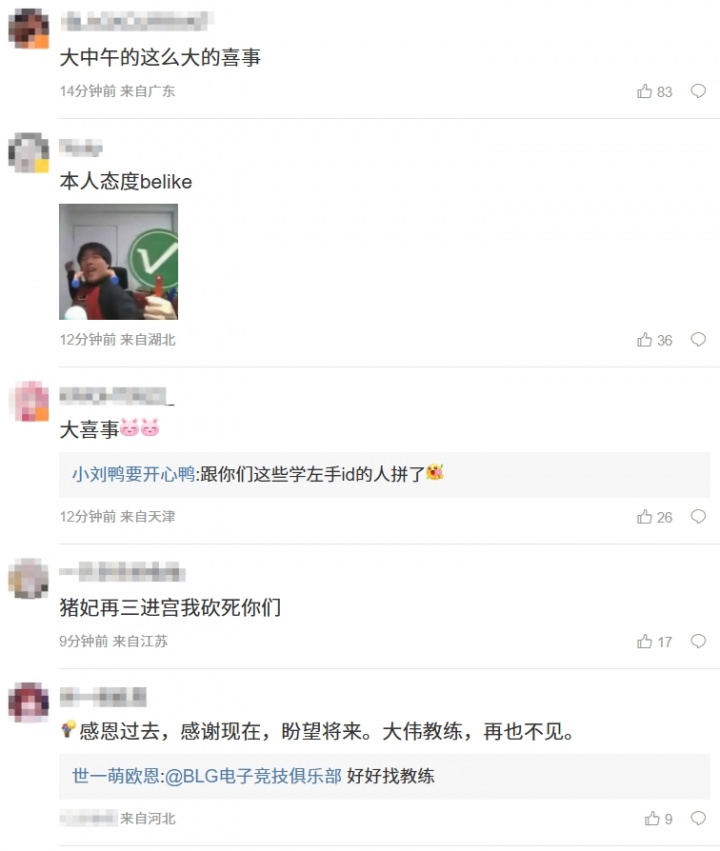 天壤之别BLG粉丝祝好绿毛离队一切顺利 Bigwei离队喜大普奔多吃一碗饭