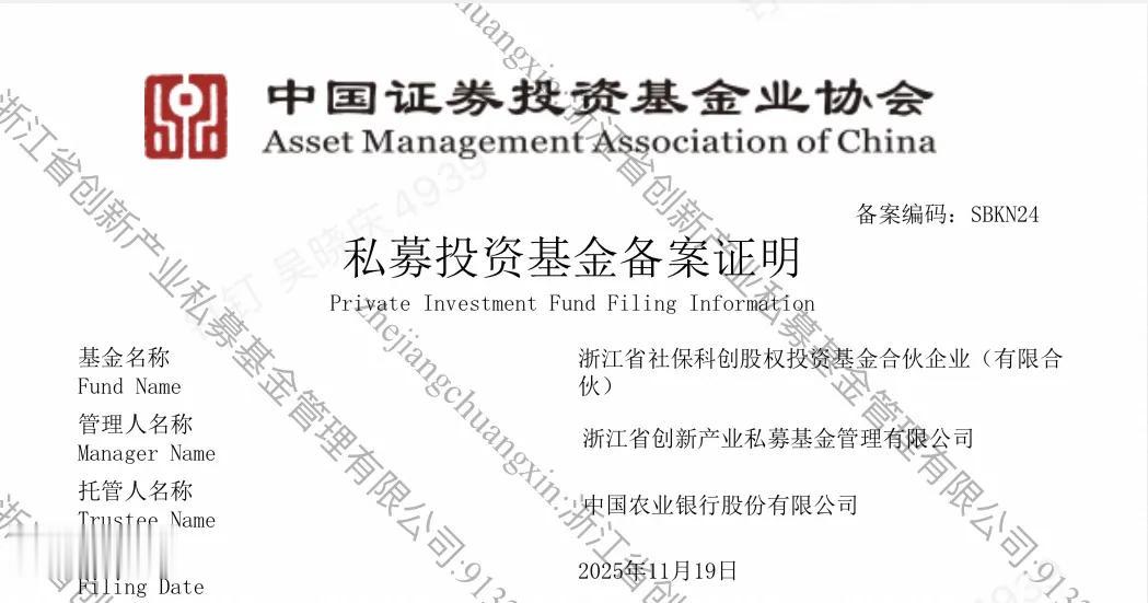 11月19日,由浙江省、全国社会保障基金理事会、中国农业银行共同发起设立的浙江省社保科创股权投资基金合伙企业(有限合伙)顺利通过中国证券投资基金业协会备案,标志着全国社会保障基金理事会与地方政府的合作成功落地。在该基金设立过程中,省创新投资集团牵头组织、各合作方高效协同、紧密配合,自基金工商注册,到全国社保基金理事会、农银投资、省创新投资集团、富浙基金、杭州资本、宁波金投等出资,直至最终完成基金备案历时仅2周,充分体现了“浙江速度”。至此,浙江社保科创基金正式启航、迈入实质性运作阶段。