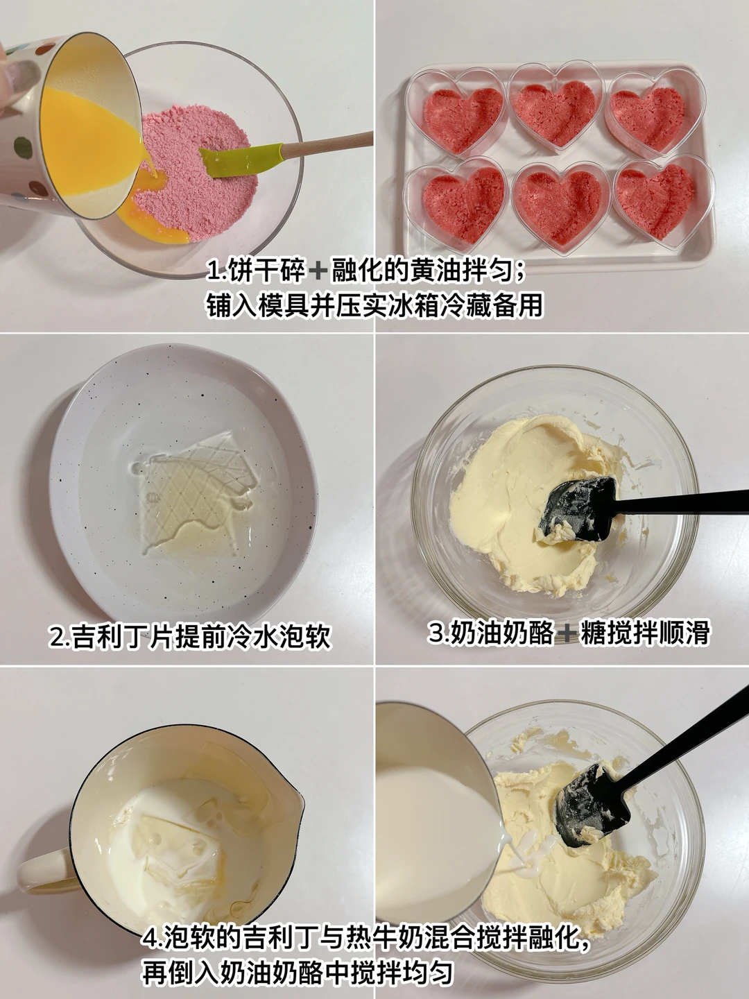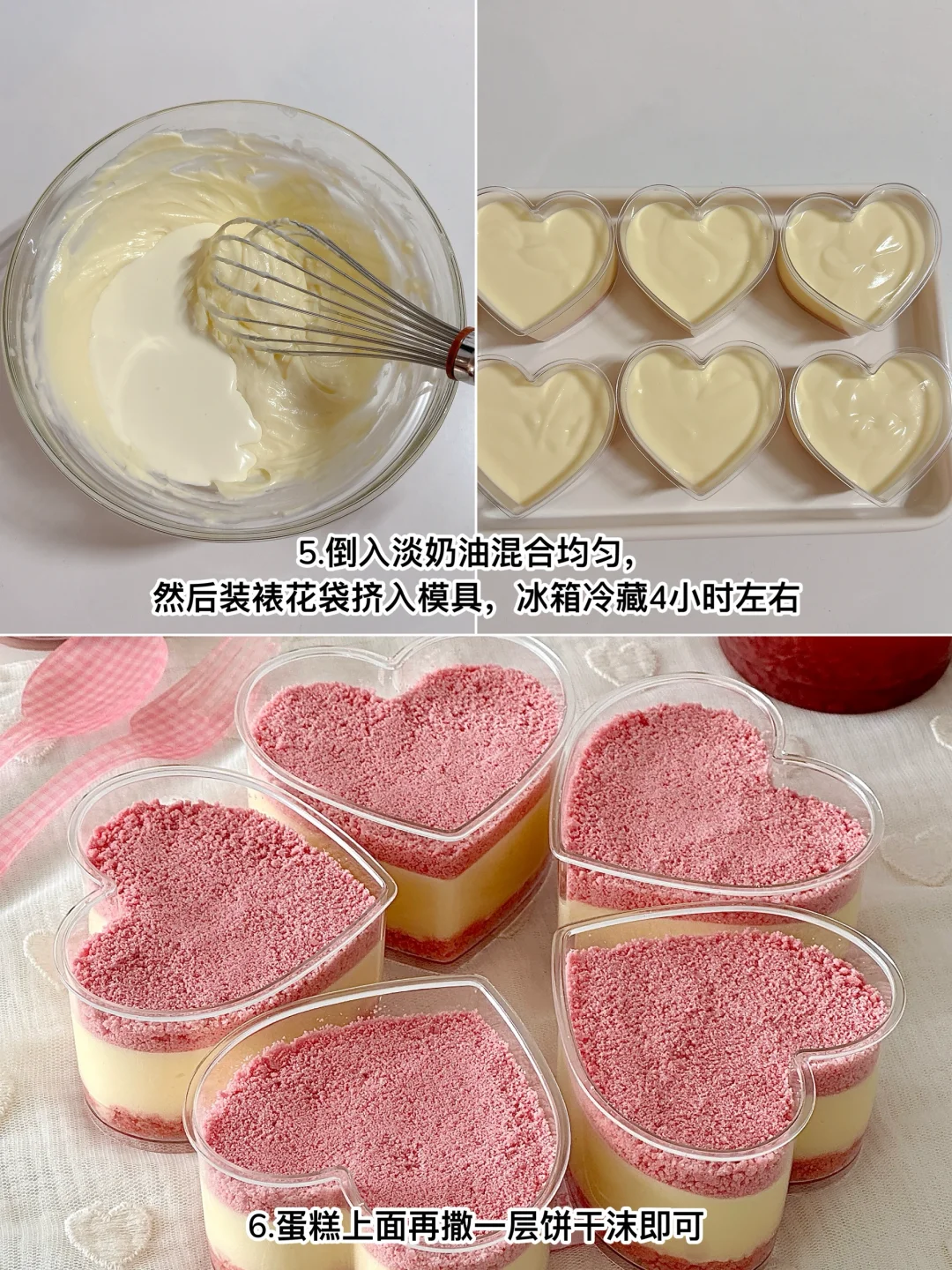这款带出去露营不要太方便了嘿嘿 造型很nice 拍照美美哒📷 口感自然也是超赞哒 [爱心R] 食材 饼干底:饼干碎100g|融化的黄油45g 芝士:淡奶油200g|奶油奶酪200g|白糖60g|吉利丁片8g|热牛奶50g|饼干沫100g [爱心R] 做法 ❶饼干碎➕融化的黄油拌匀,压入模具入冰箱冷藏 ❷奶油奶酪➕糖🥣搅拌顺滑 ❸提前泡好的吉利丁片与热牛奶混合搅拌融化,再倒入步骤2的奶酪中混合 ❹倒入淡奶油混合均匀,装裱花袋挤入饼干底模具中,送入冰箱冷藏❄️4小时左右,然后撒上饼干沫即可 -