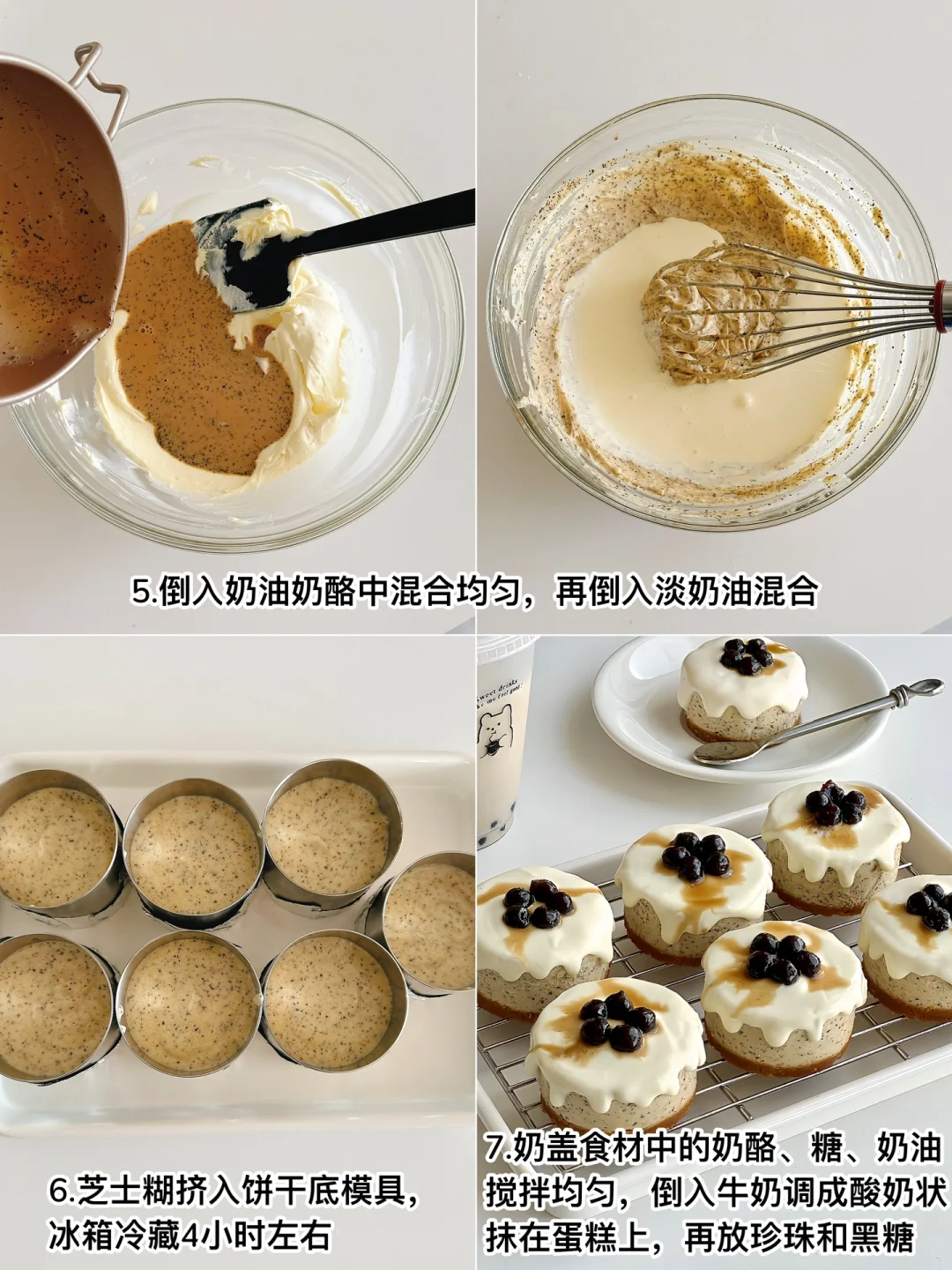 ❶饼干碎➕融化的黄油拌匀,压入模具冰箱冷藏备用