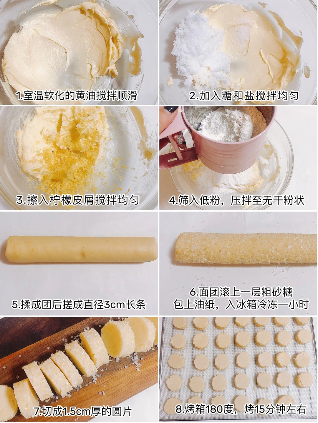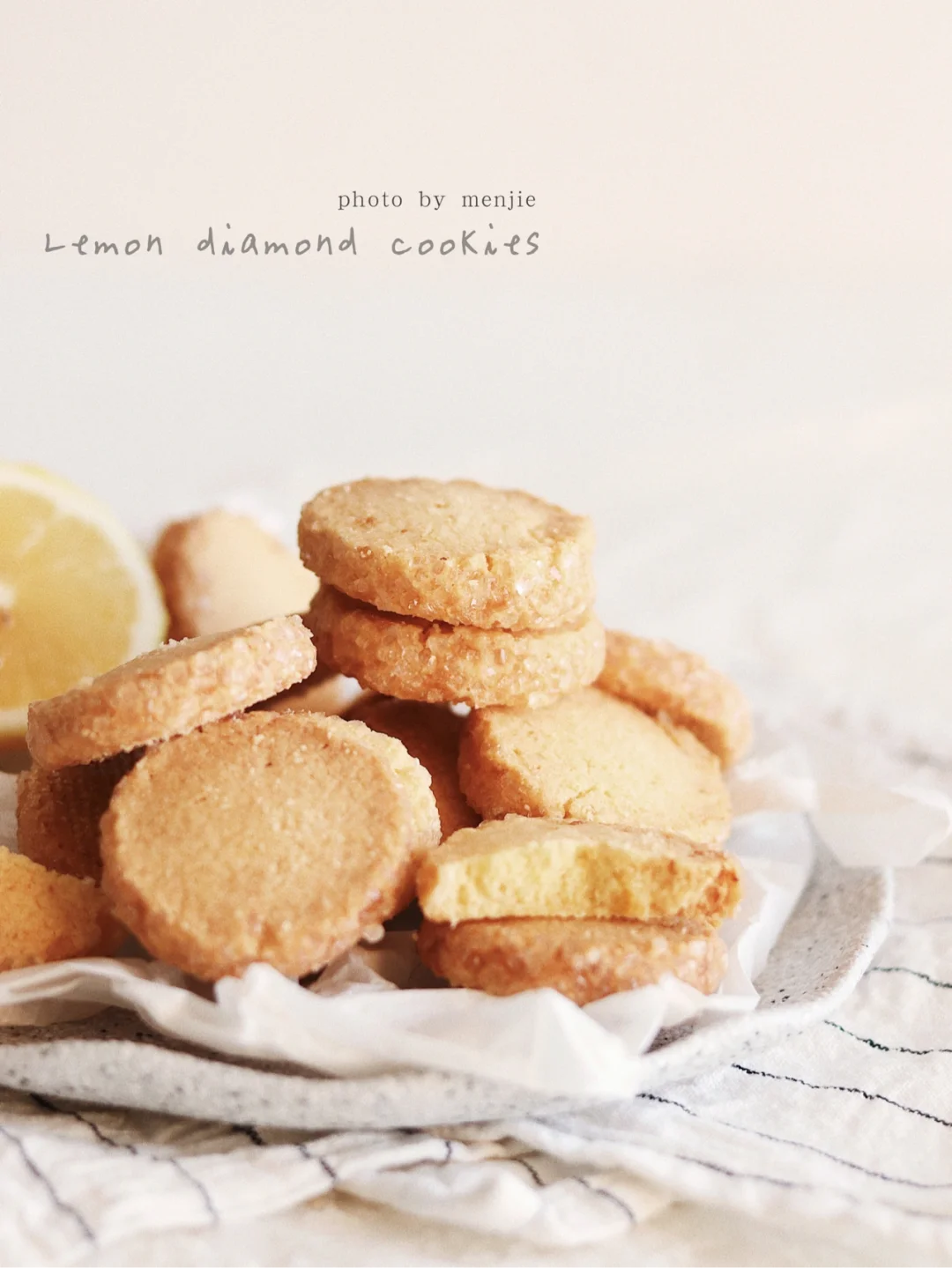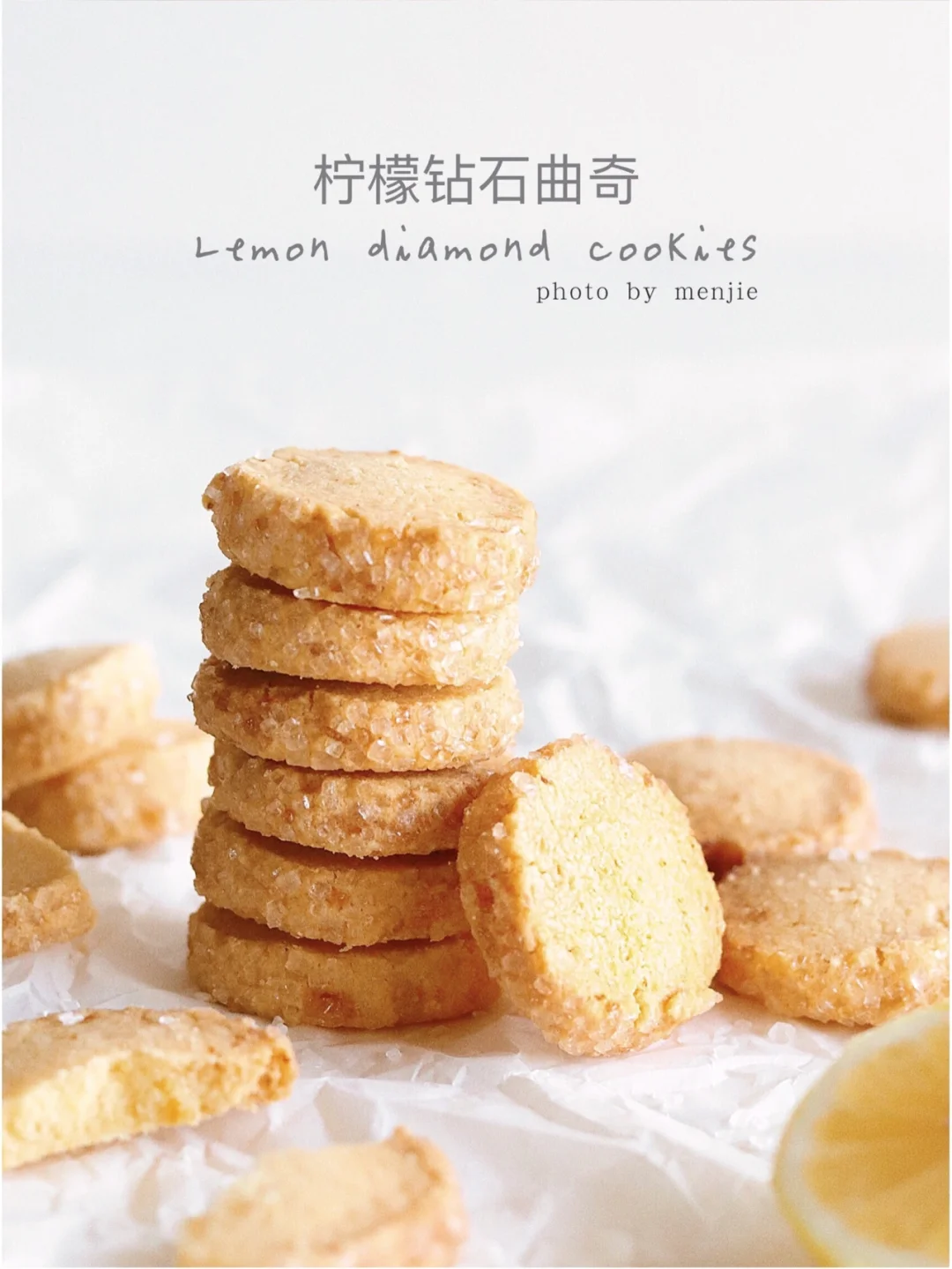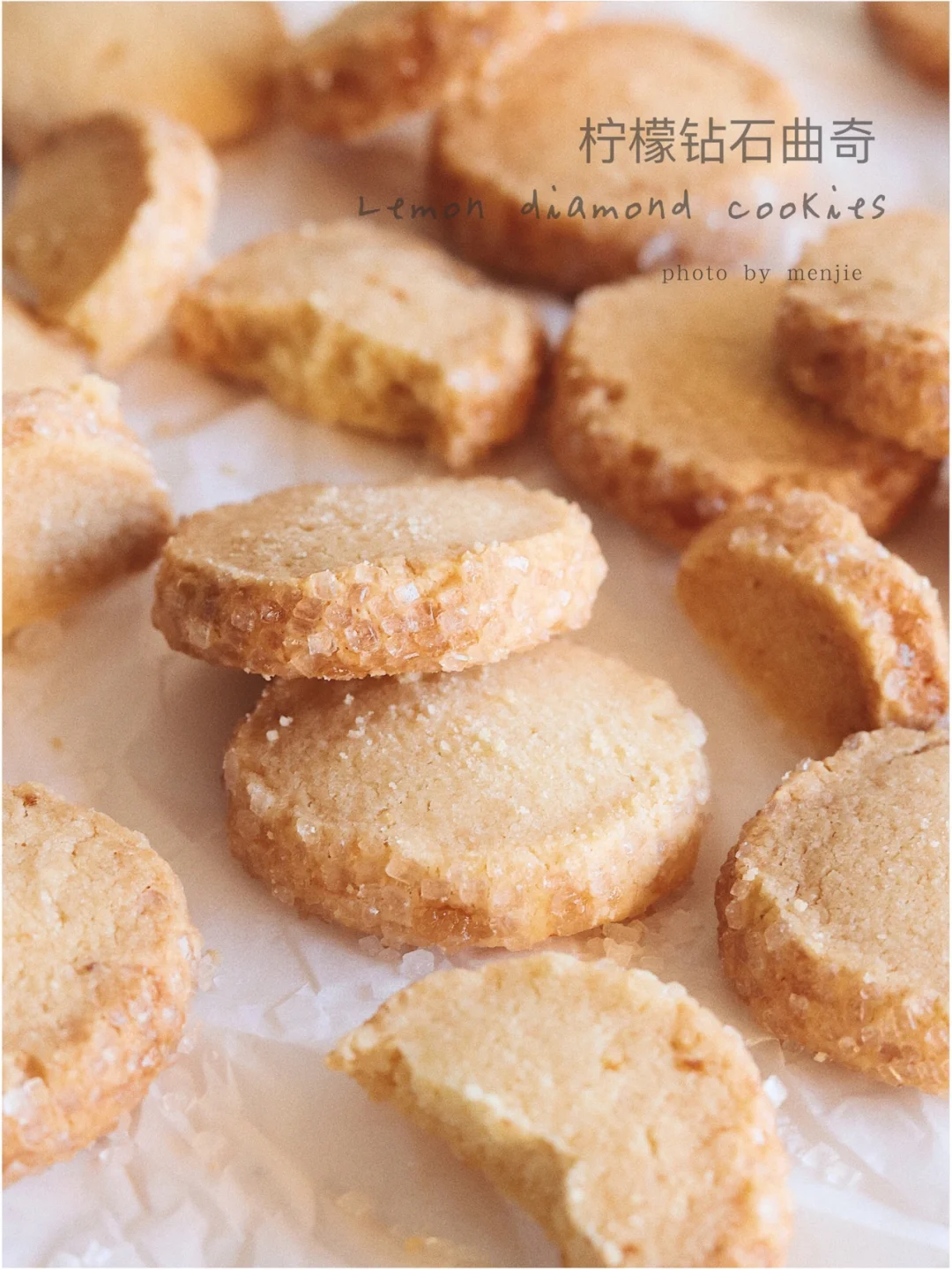 这是一款材料简单,做法简单,但是却无敌好吃的曲奇~香酥的口感加上柠檬的清香,好吃到停不下的节奏!外面裹的一层粗砂糖,如同钻石般bling bling的✨✨