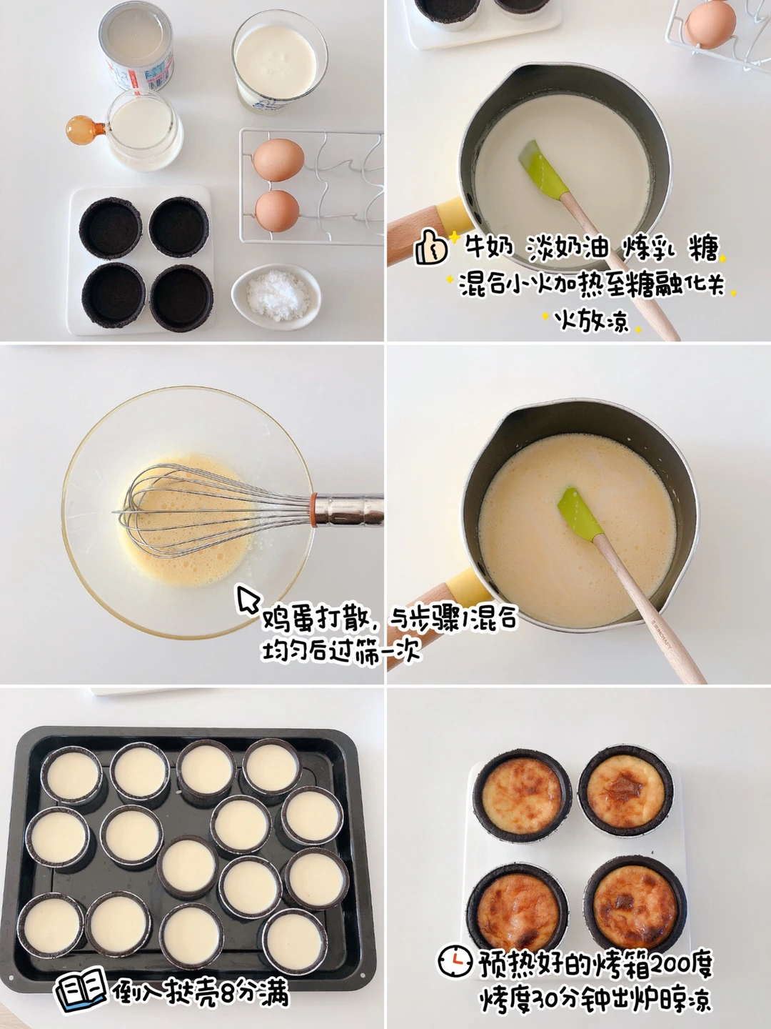 (2)鸡蛋打散,与步骤1混合后过筛两次,倒入挞壳8分满,送入预热好的烤箱200度烤35分钟出炉晾凉。