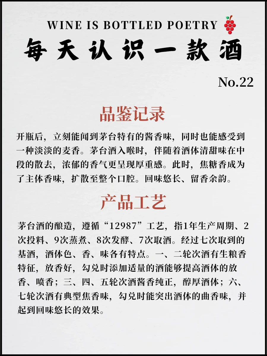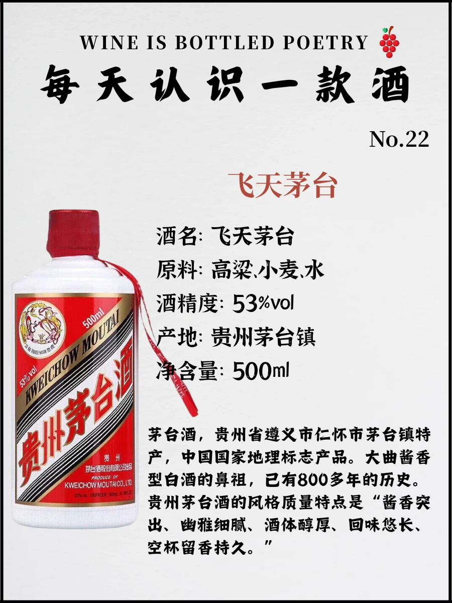 🍶贵州茅台酒是我国大曲酱香型白酒的鼻祖,是香飘世界的中国名片。