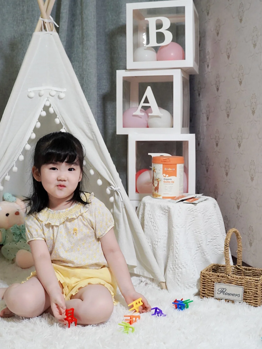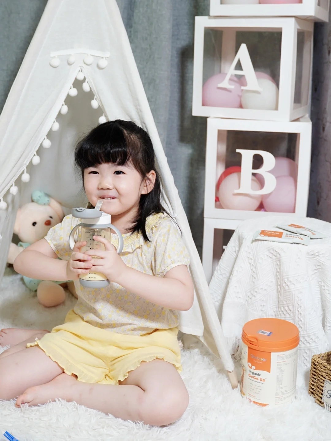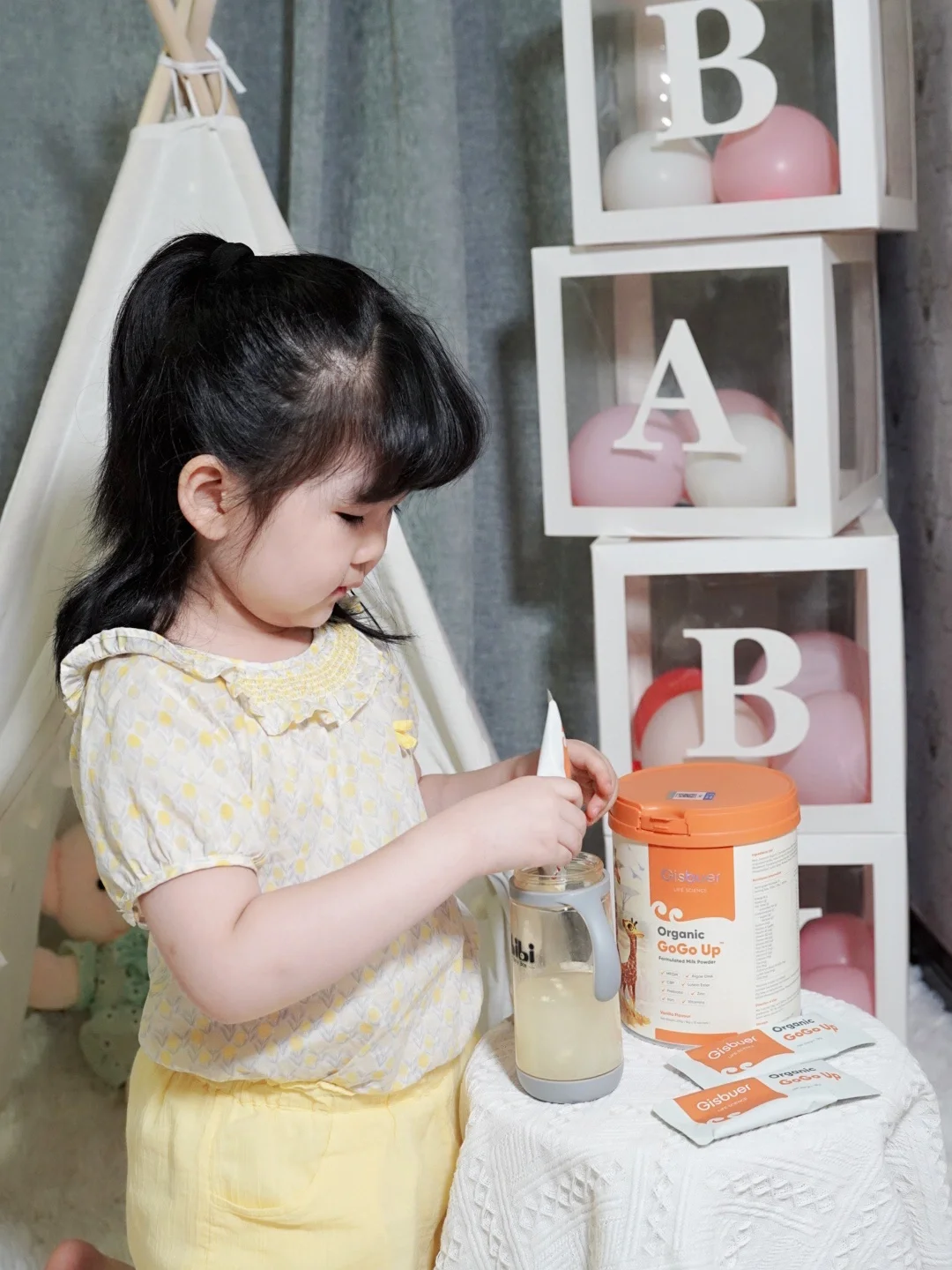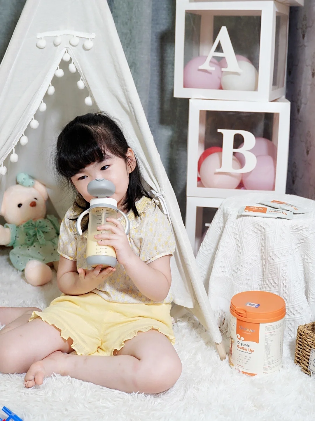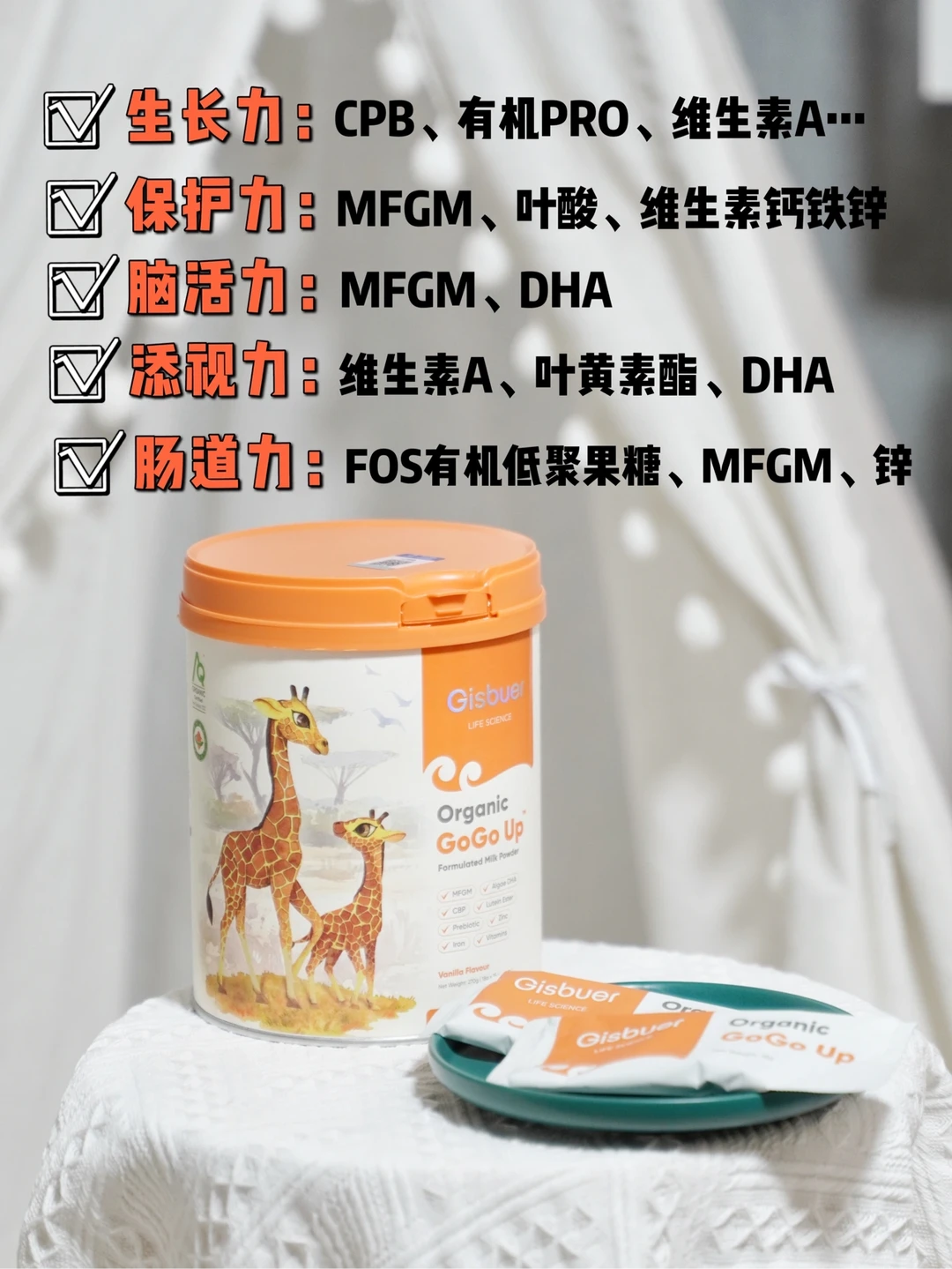 除了坚持给她吃钙片之外,成长奶粉给Sara喝的是gisbuer吉斯本有机智灵长高高奶粉,它是用的专门的有机成长配方!