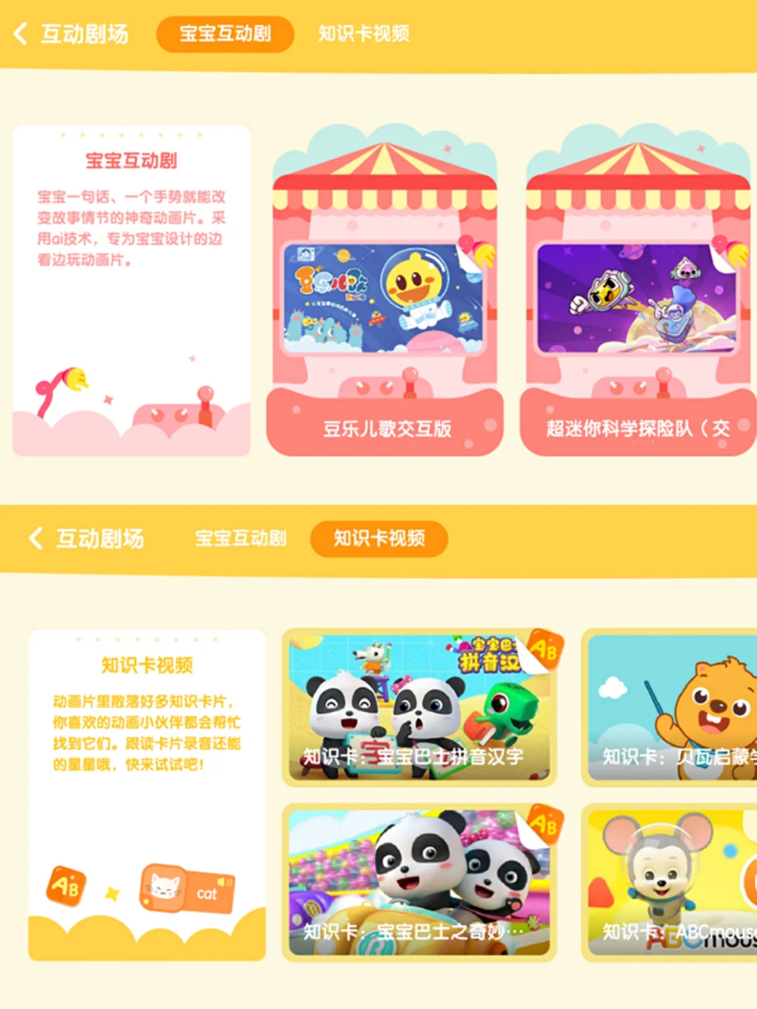知识挑战,还有超迷你战士涂鸦,配音游戏还有超级小熊布迷,从色调搭配到知识储备再到语音学习,系统化交互体验我觉得很适合早期小宝宝启蒙~