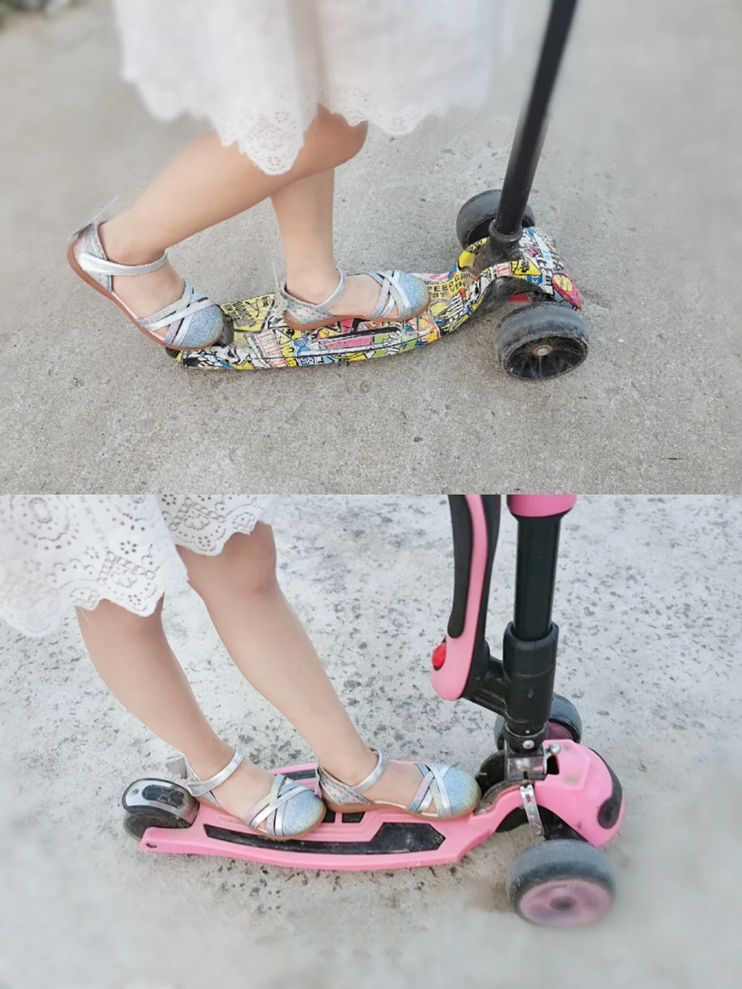 平日里姐姐其实有点女汉子,坐姿还豪放,但是吧她还偏偏喜欢穿漂亮裙子👗爱美之心人皆有之,也正常[偷笑R][偷笑R] . 前不久给她买了两条裙子👗 ,一直没看到一双合适的凉鞋,之前在泰兰尼斯给妹妹入手了几双鞋,舒服又好看,无意中看到这款彩色公主鞋,bling bling的,太好看啦!!不用说,姐姐①定喜欢😍 . 鞋收到后开心得不得了,骑着滑板车就出去溜达了,哈哈😄 不得不说穿上仙女裙和👸 公主鞋之后,举止变得淑女一点了
