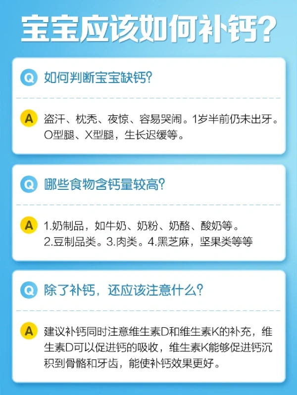 建议补钙同时注意维生素D和维生素K的补充,维生素D可以促进钙的吸收,维生素K能够促进钙沉积到骨骼和牙齿,能使补钙效果更好👌