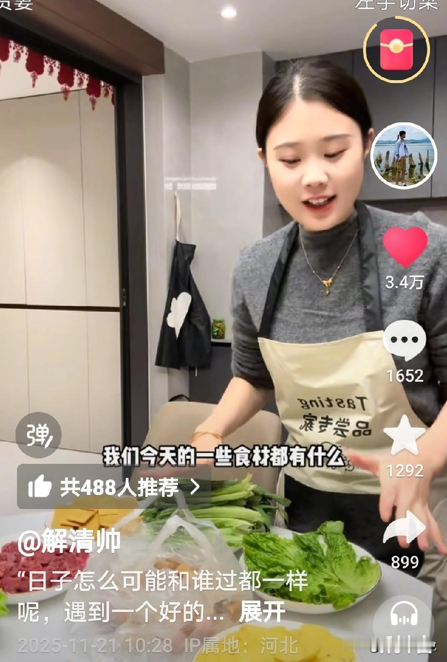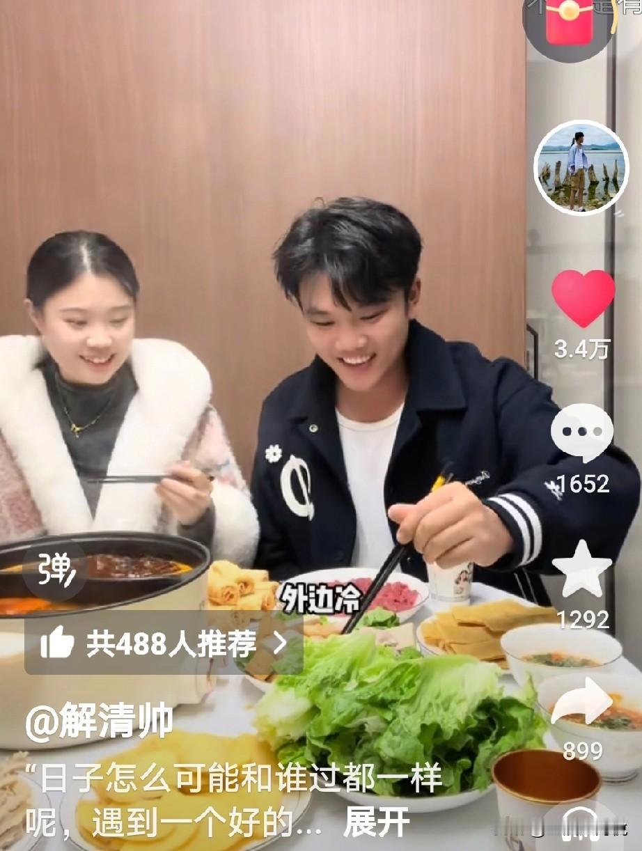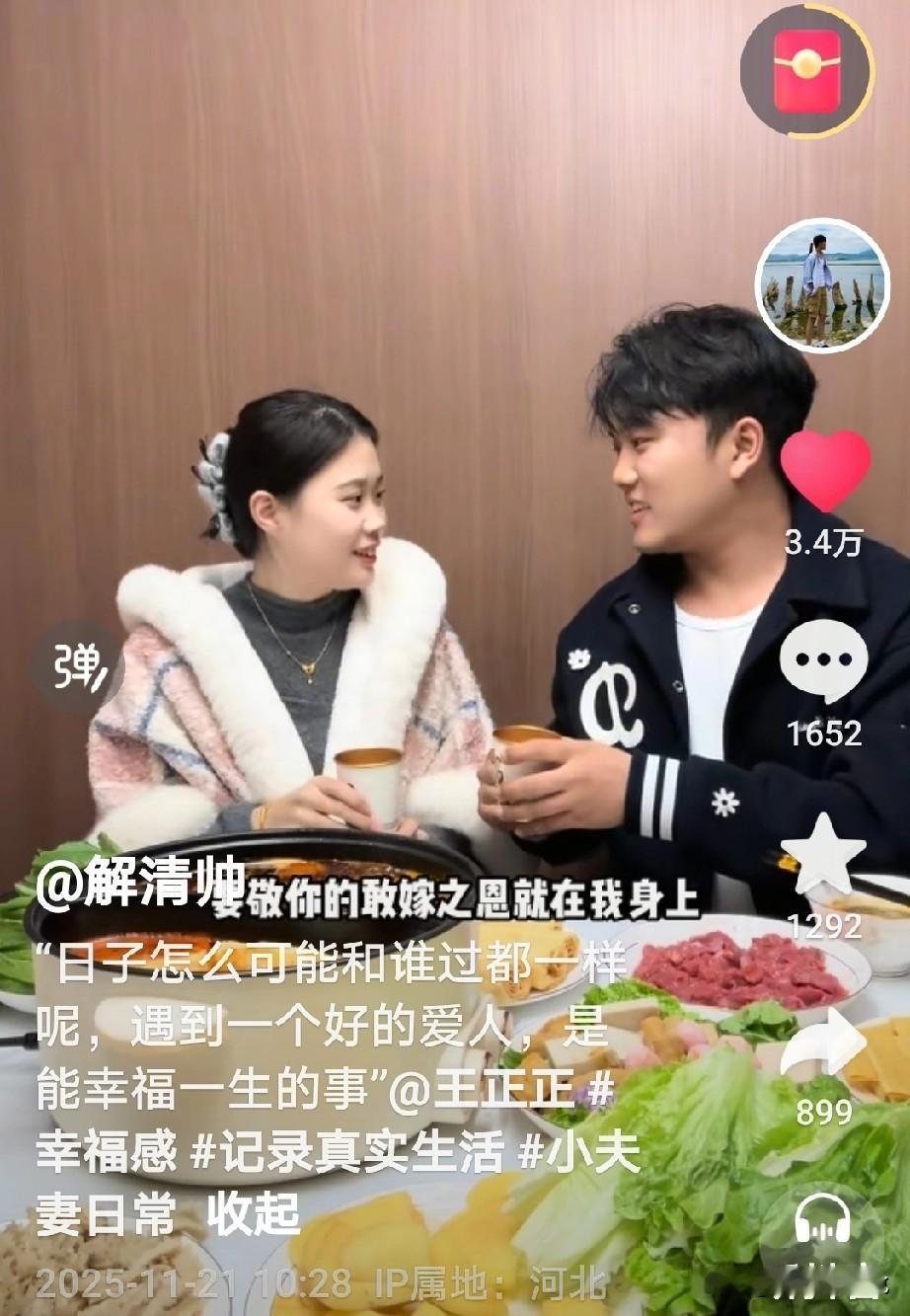 解清帅又在网上撒狗粮了, 解清帅说,日子怎么可能和谁过都一样呢? 遇到一个好的爱人能幸福一辈子, 解清帅这话说的没错,取娶上一个好媳妇能旺三代。 今天发的视频是王正正先下班, 然而王正正为解清帅第一次做饭,做的比较简单,火锅,就是把菜切一切,洗一洗就完事的,但是火锅底料是王正正自己亲手做的,她把火锅底料炒了, 看的出解清帅现在比以前幸福多,