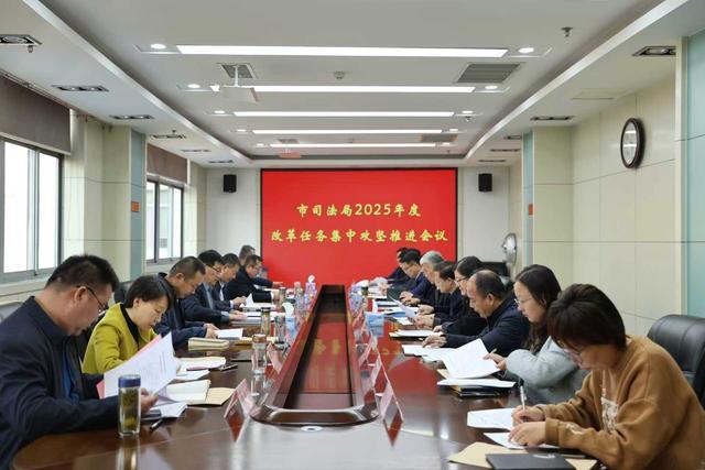 11月20日,枣庄市司法局召开2025年度改革任务集中攻坚推进会议。党组书记、局长孙守春出席会议并讲话,市委政研室副主任孙中立到会指导,局机关、市公法中心相关处(科)室负责人参加。