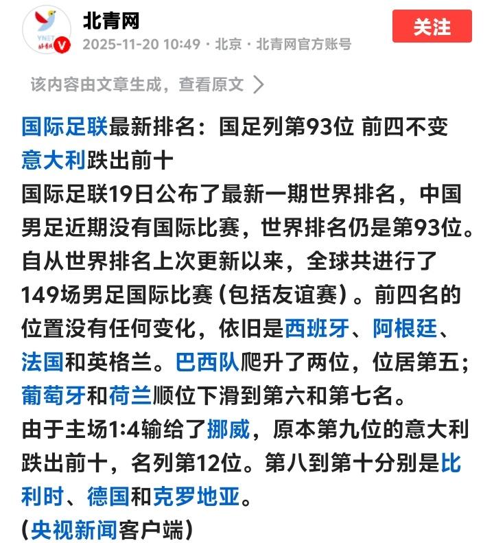 中国足球排名第93位背后真相曝光!14亿人揪心追问:我们的绿茵梦何时才能照进现实? (来源:北青网) 当国际足联最新排名定格在第93位时,无数中国球迷的叹息再次淹没在社交媒体的调侃中。四个月没有国际比赛,国足像被按下了暂停键,唯有排名在原地踏步。这个数字背后,是亚洲第14的尴尬,是世界杯梦碎的余震,更是亿万双眼睛对未来的拷问。 有网友苦中作乐道:“全球197个国家,我们排93,算是中等偏上!”这种自我解嘲的背后,藏着一代又一代球迷的无奈。从2002年世界杯的昙花一现,到如今连续五届预选赛折戟,中国足球仿佛陷入了一个循环:换帅、重组、希望、失望。而这次,连友谊赛的练兵机会都寥寥无几。 对比亚洲劲旅,日本高居世界第18,伊朗、韩国紧随其后。我们的邻居用二十年磨一剑的坚持,将足球融入青训与社区。反观国内,球迷们一边吐槽“足协不除,足球难兴”,一边在深夜守着海外联赛,为别人的精彩欢呼。这种撕裂感,何尝不是一种悲哀? 更扎心的是,有球迷翻出数据:国足亚洲排名第14,中国股市全球排名第101。网友调侃道:“足球和股市,谁更让人心梗?”戏谑之间,折射出公众对“系统性困局”的敏锐洞察。足球不是孤立的存在,它与体制、文化、社会心态环环相扣。 还记得6月世预赛出局时,那句“对不起”刷屏网络。如今新帅邵佳一上任,球迷们既期待又害怕。期待的是“本土少帅”能唤醒球队血性,害怕的是重蹈“换汤不换药”的覆辙。毕竟,国足的症结从来不只是教练或球员,而是青训断层、联赛浮躁、急功近利的连锁反应。 有资深媒体人指出:“国足排名看似稳定,实则是‘无赛可输’的假象。若真与百名后的球队交手,胜负未必乐观。”这句话撕开了温情的面纱——足球世界没有侥幸,只有硬实力。当我们嘲笑“梵蒂冈队可能都踢不过”时,是否也该反思:嘲讽之外,我们为足球做过什么? 值得玩味的是,每次国足失利,民间段子总比进球更精彩。从“白斩鸡”到“海参梗”,从“保护性接应”到“平衡国运”,网友用幽默消化失望,却也用关注延续着希望。这种“边骂边爱”的矛盾,恰是中国足球最独特的土壤。 眼下,亚洲杯分档迫在眉睫。若无法冲进亚洲前12,国足将陷入“死亡之组”的恶性循环。但排名只是表象,真正的破局在于:我们敢不敢抛弃“速成”幻想,像种树一样,从孩子的第一脚球开始,等待一片森林? 或许,第93位是一面镜子。它照见失败,也映出机遇。当球迷们一边放烟花“庆祝百强”,一边悄悄搜索“青训报名入口”时,那个关于绿茵的梦,从未真正熄灭。 国足世界排名 中国足球 93 国足真相 足球未来 青少年训练革命 国足现状 中国足球衰落 国足实力争议 中国足球排名 国足亚洲排名