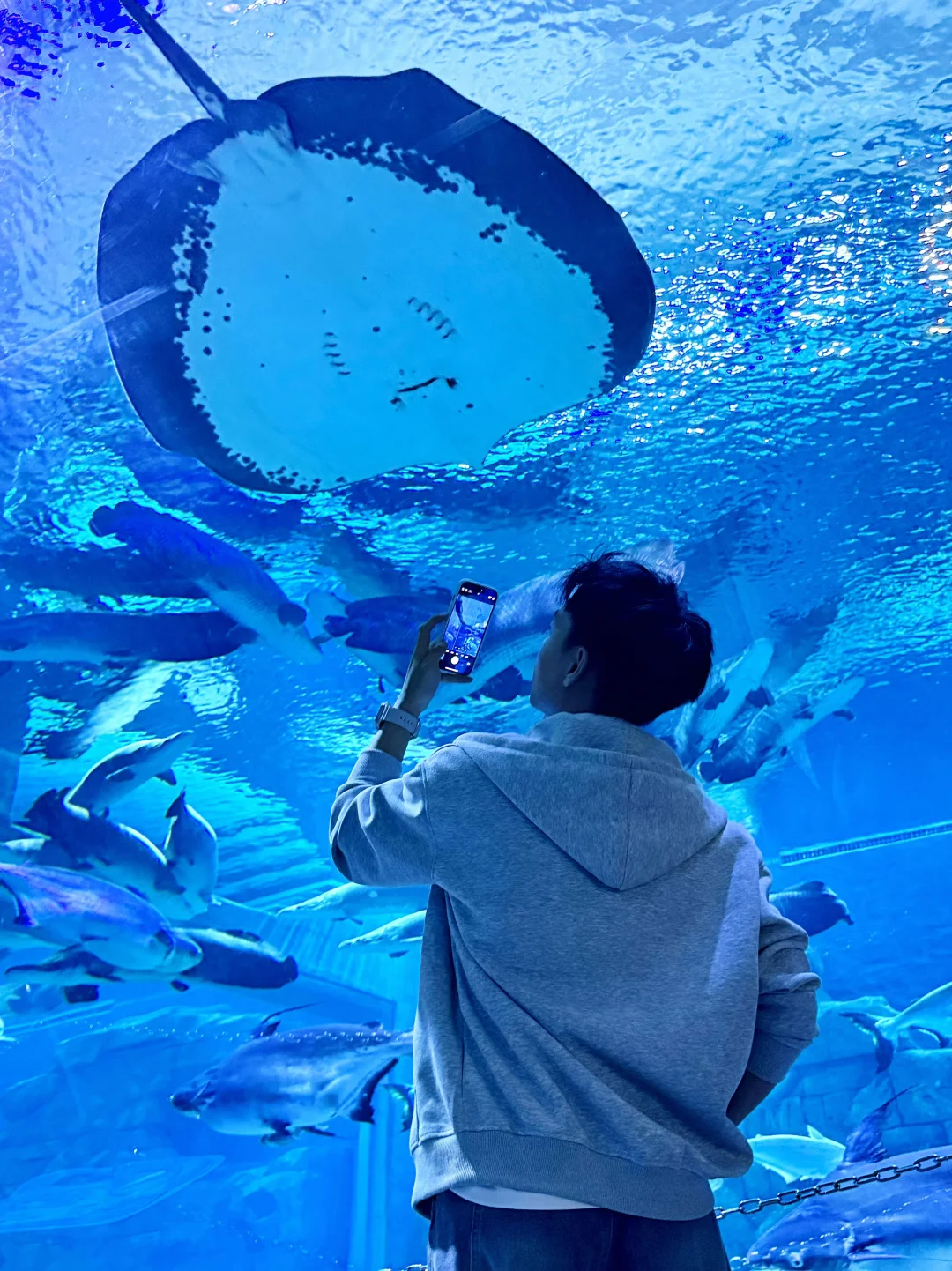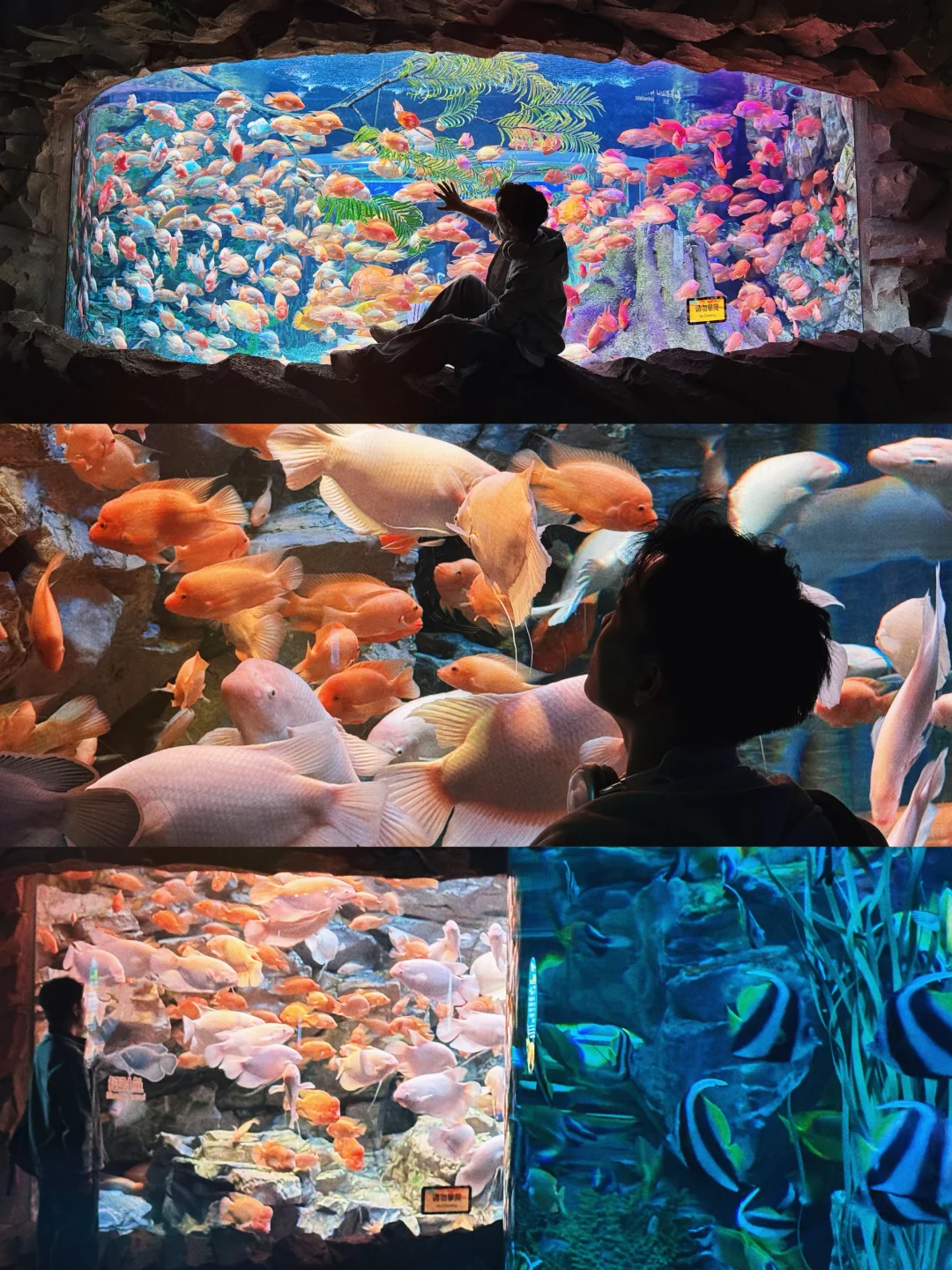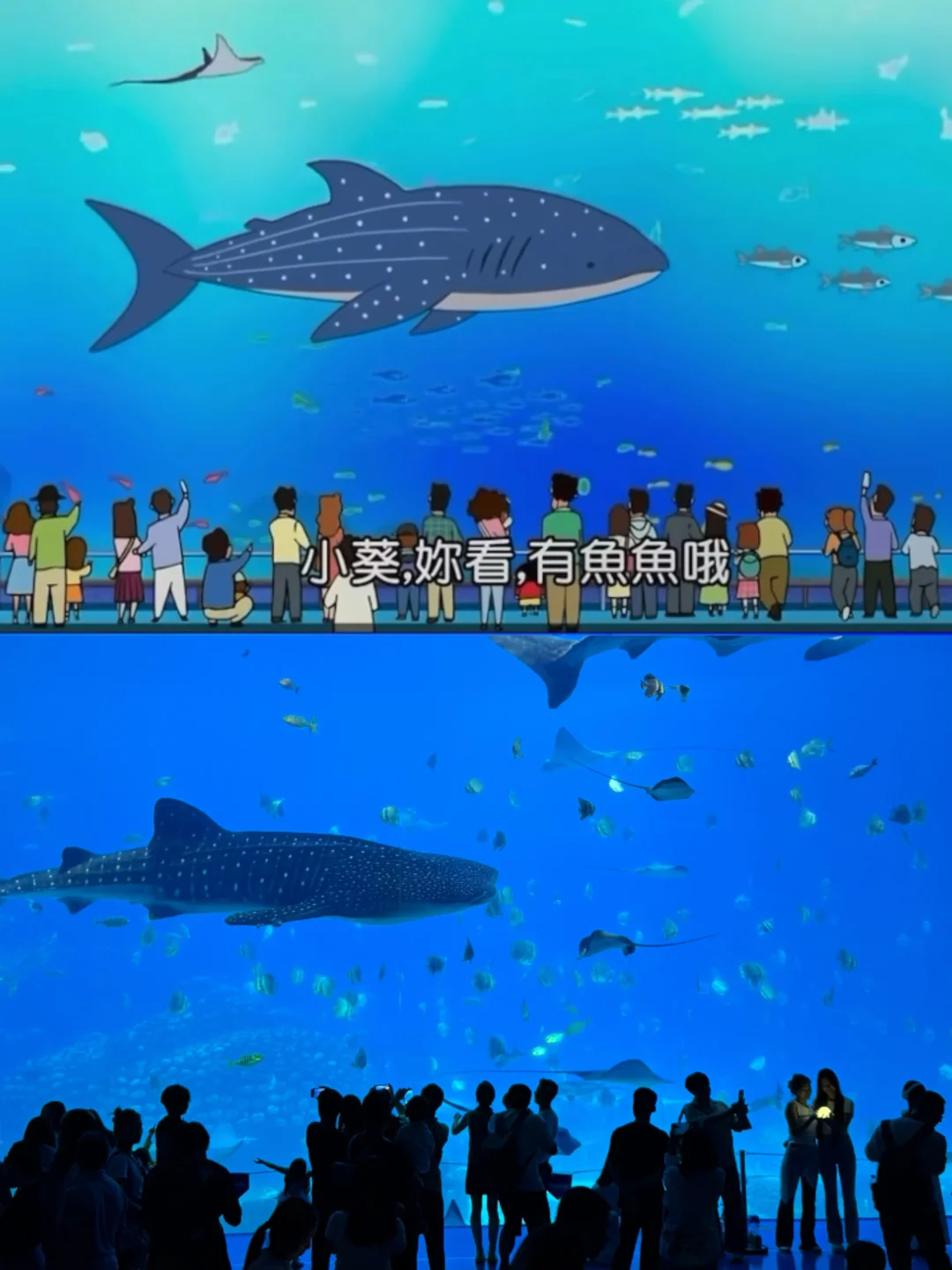 1️⃣鲸鲨馆:治愈系海底世界,记得在斜坡拍一张蜡笔小新同款画面。