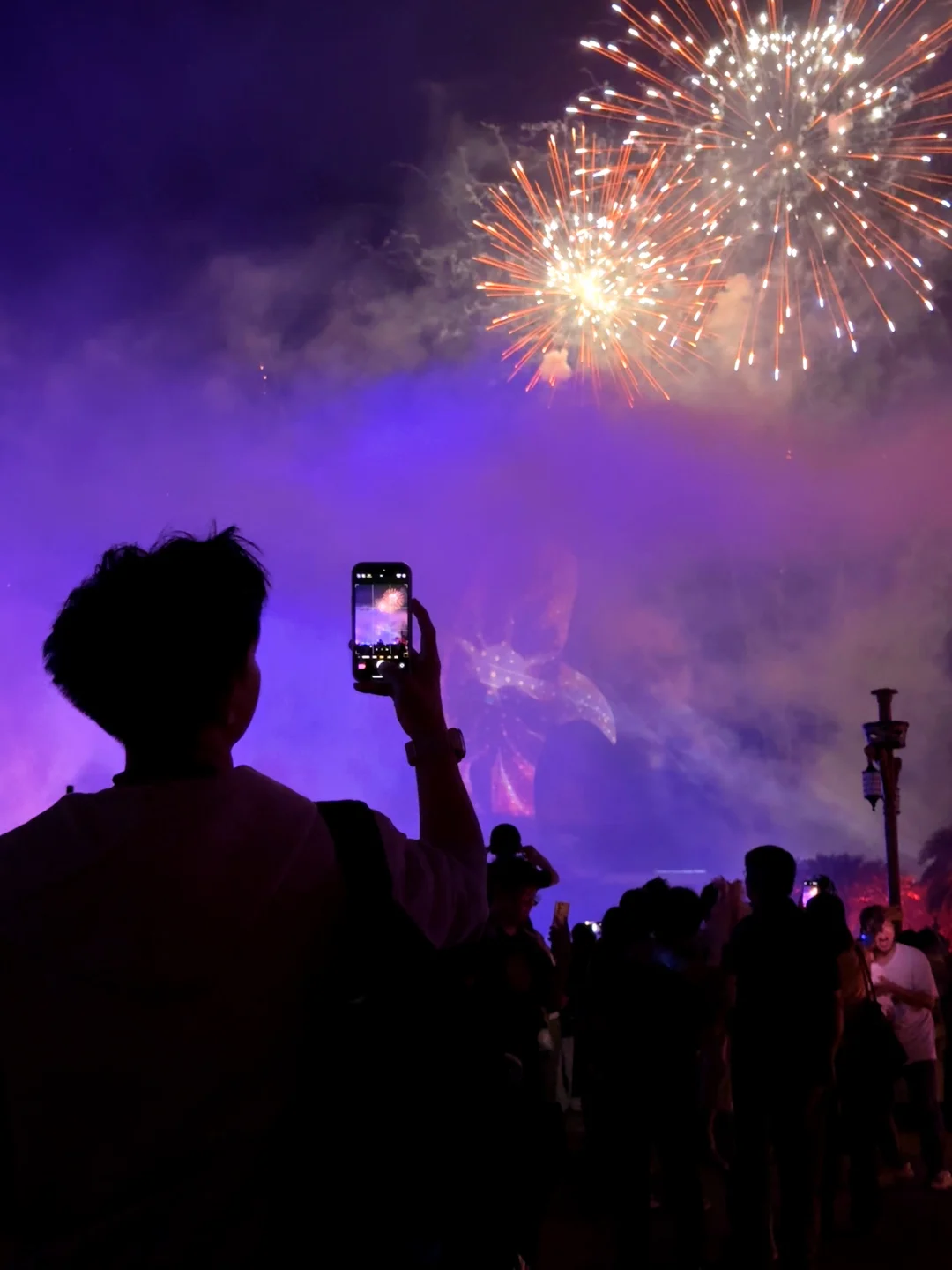 4️⃣20:00点烟花秀:不要进第一排,在外面就行,才能拍到人被烟花包围的氛围感。