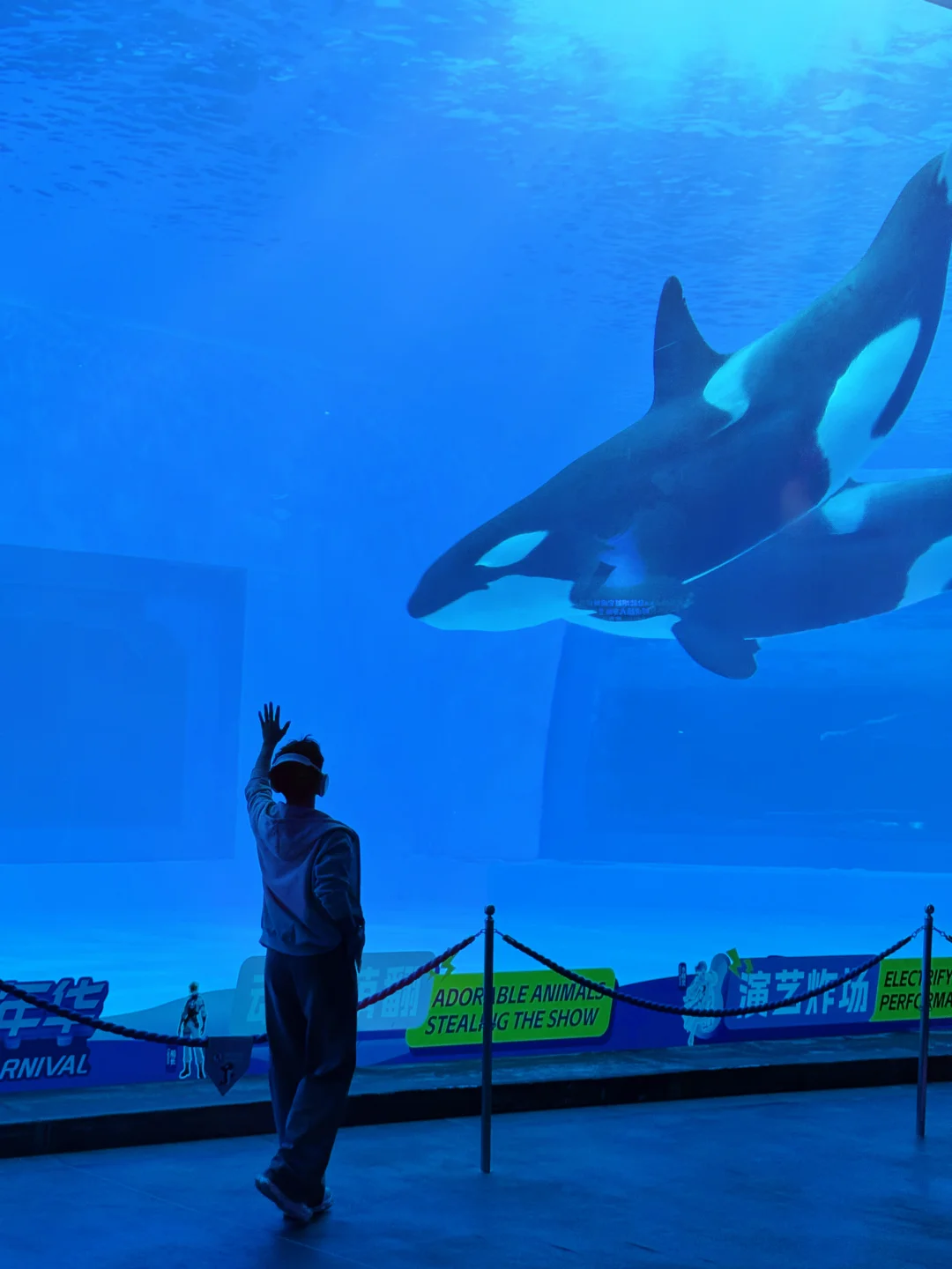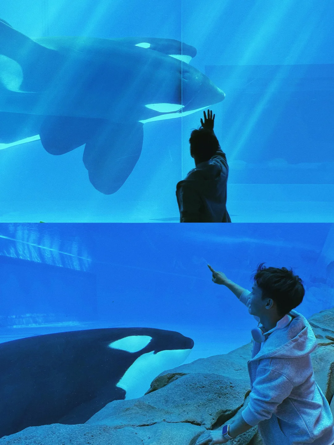 2️⃣鲸奇宇宙:虎鲸个个都是戏精,在窗前与它挥手互动。打开实况,记录人生第一次与虎鲸的唠嗑时刻。