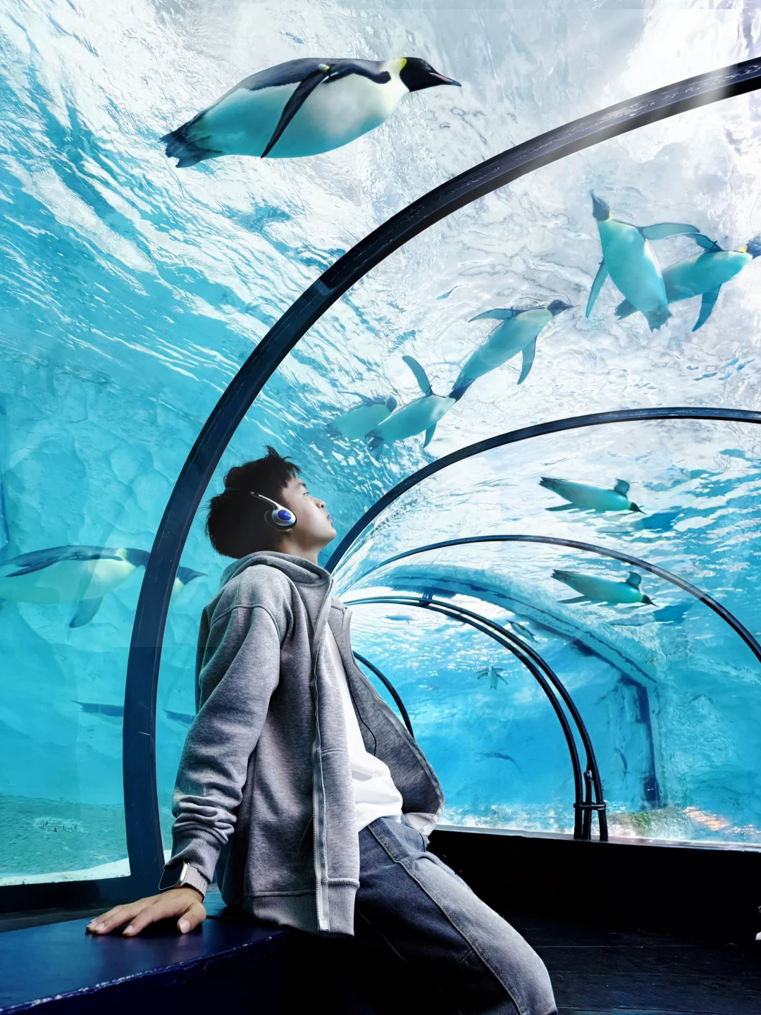 2️⃣企鹅馆:企鹅在头顶活泼乱跳游过,低头仰拍一下,像是闯入真实的南极世界!