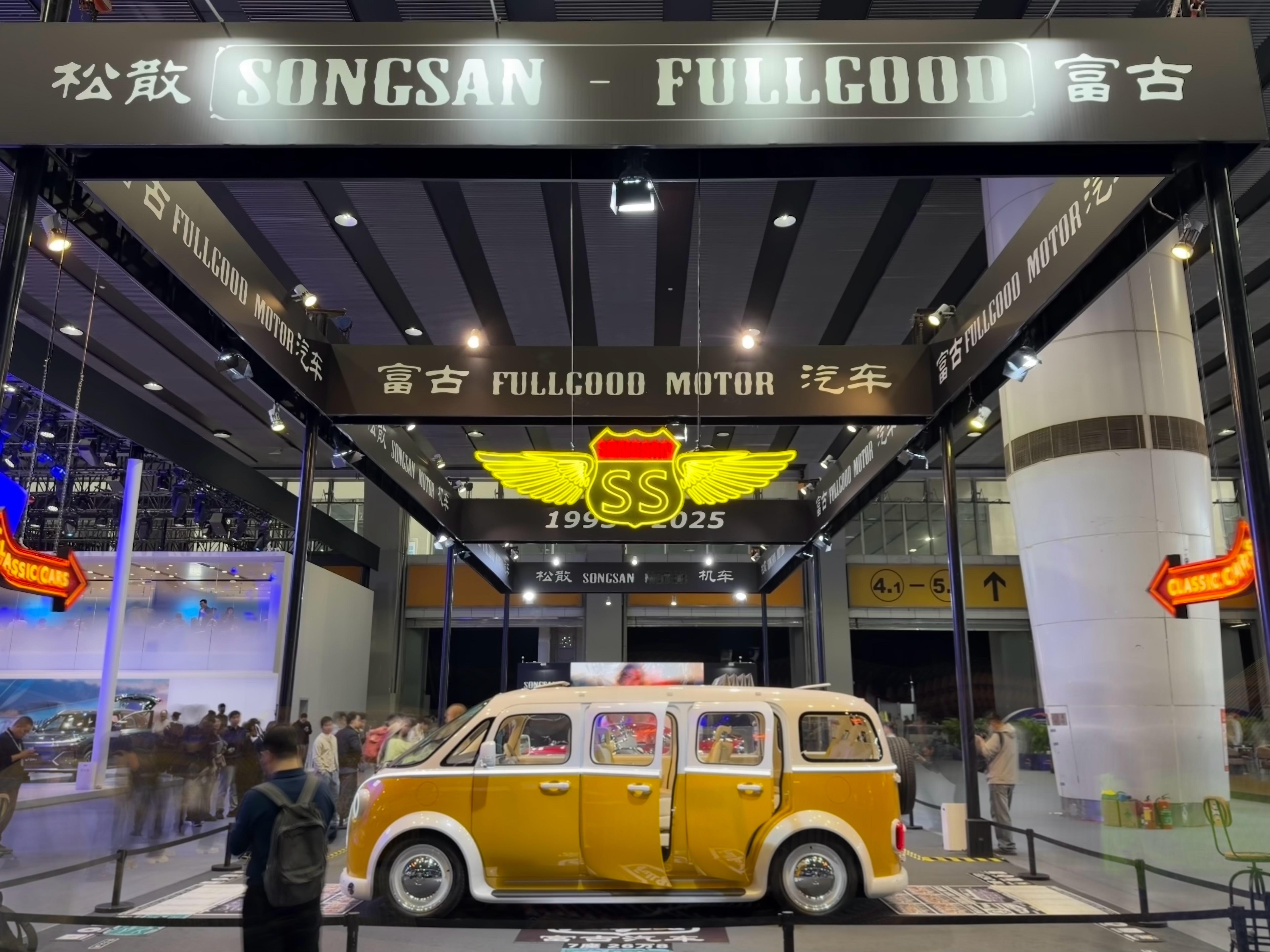 车展逛到松散·富古展台,小翠就走不动道了它们的设计思路太妙了:把上世纪50-70年代的经典车型“复活”——像黄色MPV致敬大众T1,敞篷车复刻科尔维特C1,连火箭尾翼都是美式老车那味儿。但内核是纯电/混动+智能底盘,复古壳子裹着现代科技,完美戳中“情怀党+实用派”。品牌本身是从美式机车改装起家,现在专攻“复古未来主义”,每款车都是“能合法上路的移动古董”,这路子真的独一份!