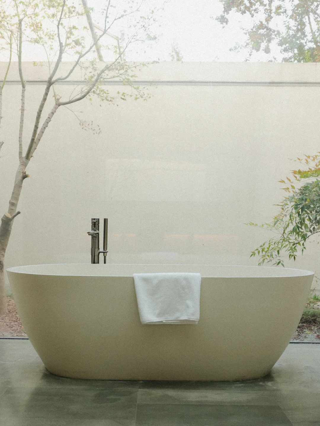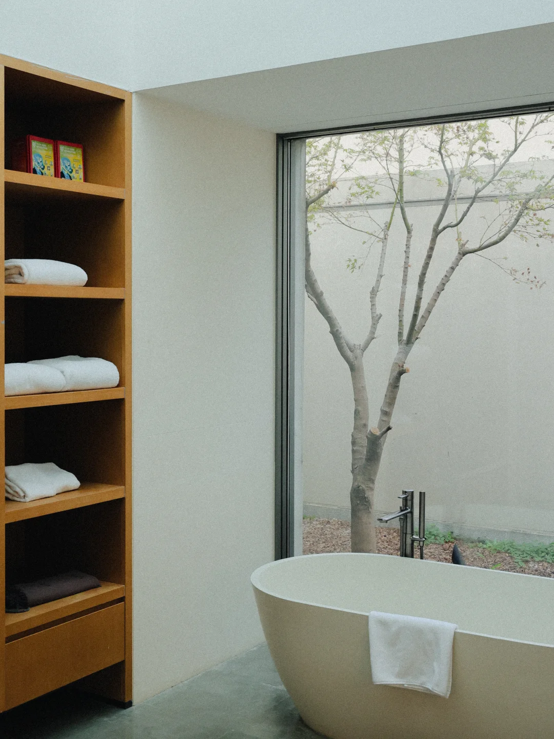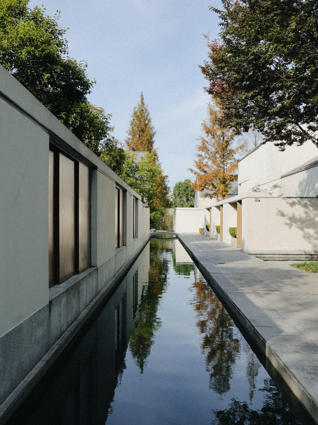 用纯白色的几何体块和极简线条构建了一个现代版的“水上迷宫” ,无论是蓝调时刻还是次日的晨光,是一旦拿起相机就不忍放过每个细节的美。 升级到了泳池别墅房,客厅真的舒服,落地窗和外面的绿意,本INFJ爱惨了😂 而横平竖直的建筑,山水相逢,以及一些东方园林经典的隐喻,也确实舒服。 不过酒店运营也挺久,加上江南的潮湿天气,其实很多装修细节都经不起推敲,同时高度依赖天气的迷宫式酒店,入住体验还蛮看运气的。