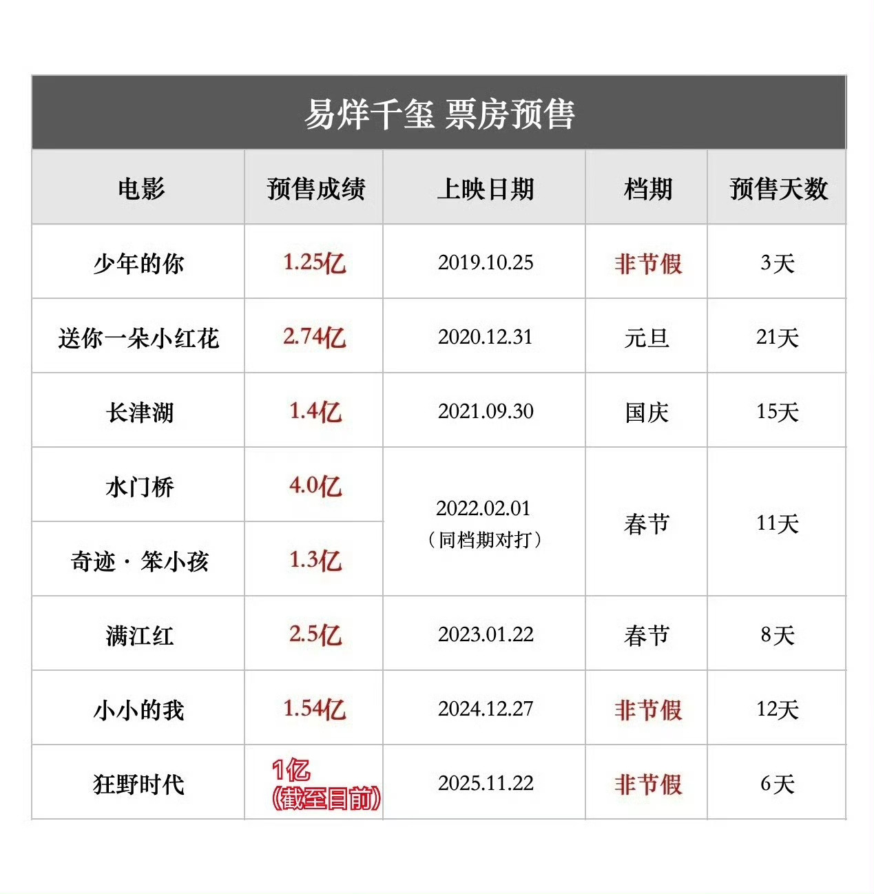 养成系粉丝氪金太吓人了,《狂野时代》预售刚刚也破亿了,现在连小众文艺电影也不影响
