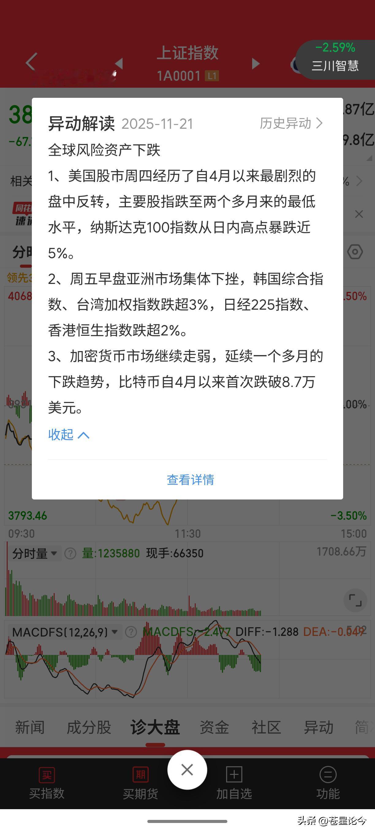 昨晚美股暴跌,然后大A不甘示弱,今天也跟着。美股道琼斯-0.84%,纳克达克斯-2.15%,标普-1.56%。A股上证-2.45%,深证成指-3.41%,创业板-4.02。 美股2457家上涨,7507家下跌。A股354家上涨,5072家下跌。老美跌的大部分大部分都0%-3%区间的,A股跌的的大部分是3%-5%区间,0%-3%到和5%-7%点也多。 还有跌的原因,同花顺说了三点:1、美股下跌的影响。2、亚洲市场集体下跌,韩国、台湾、日本、香港指数下跌。3、比特币大跌。 其他我还是能理解,我最不能理解为何比特币会影响会影响A股市场?美股 美股盘后重挫 美股盘后重挫 #A股